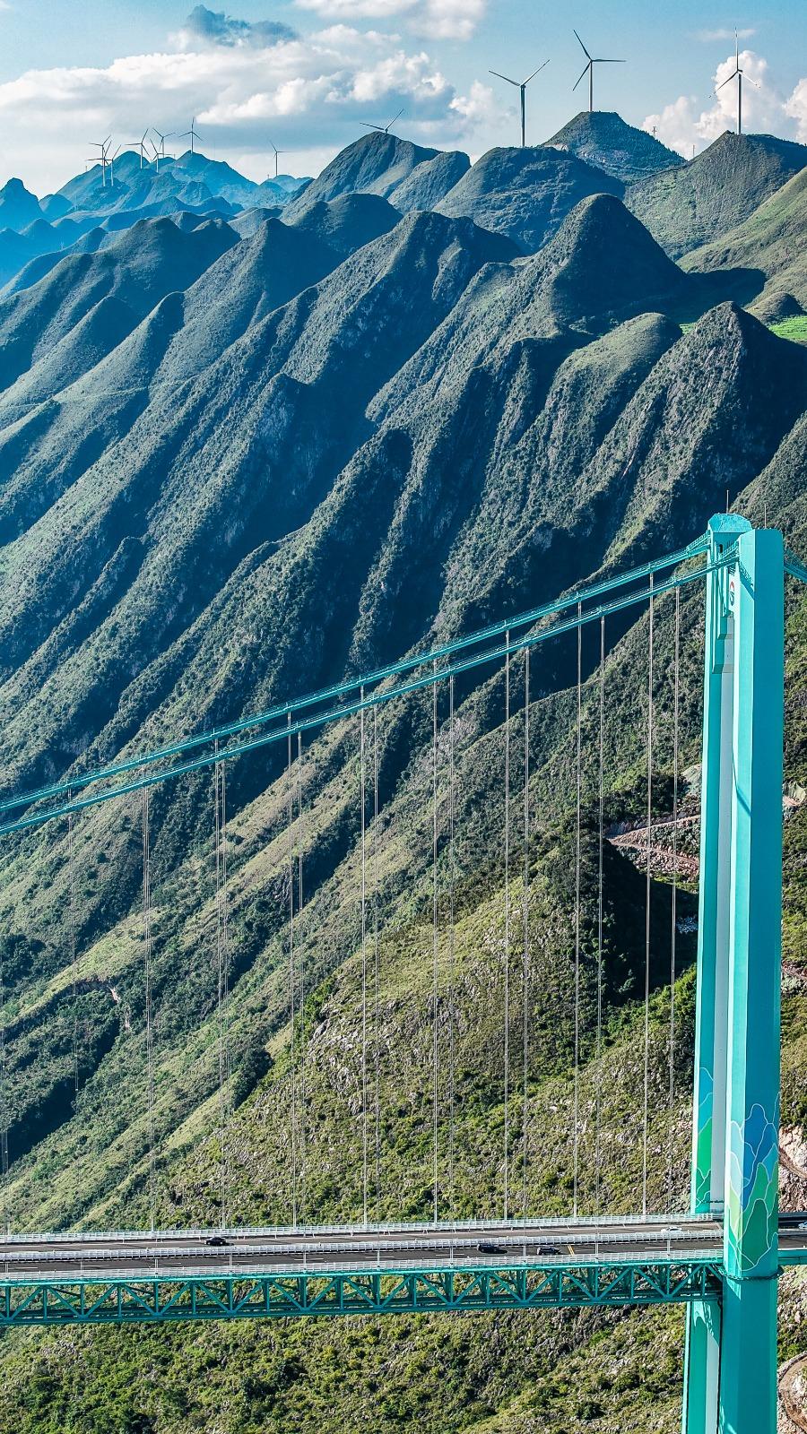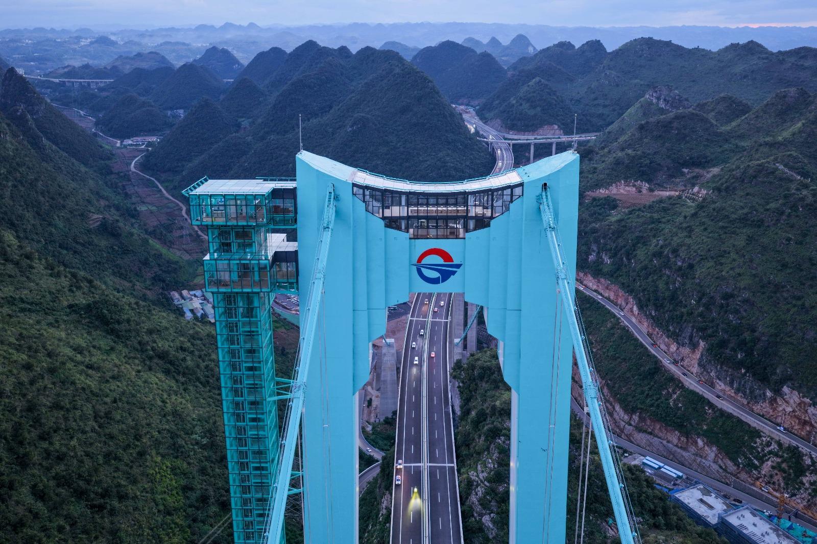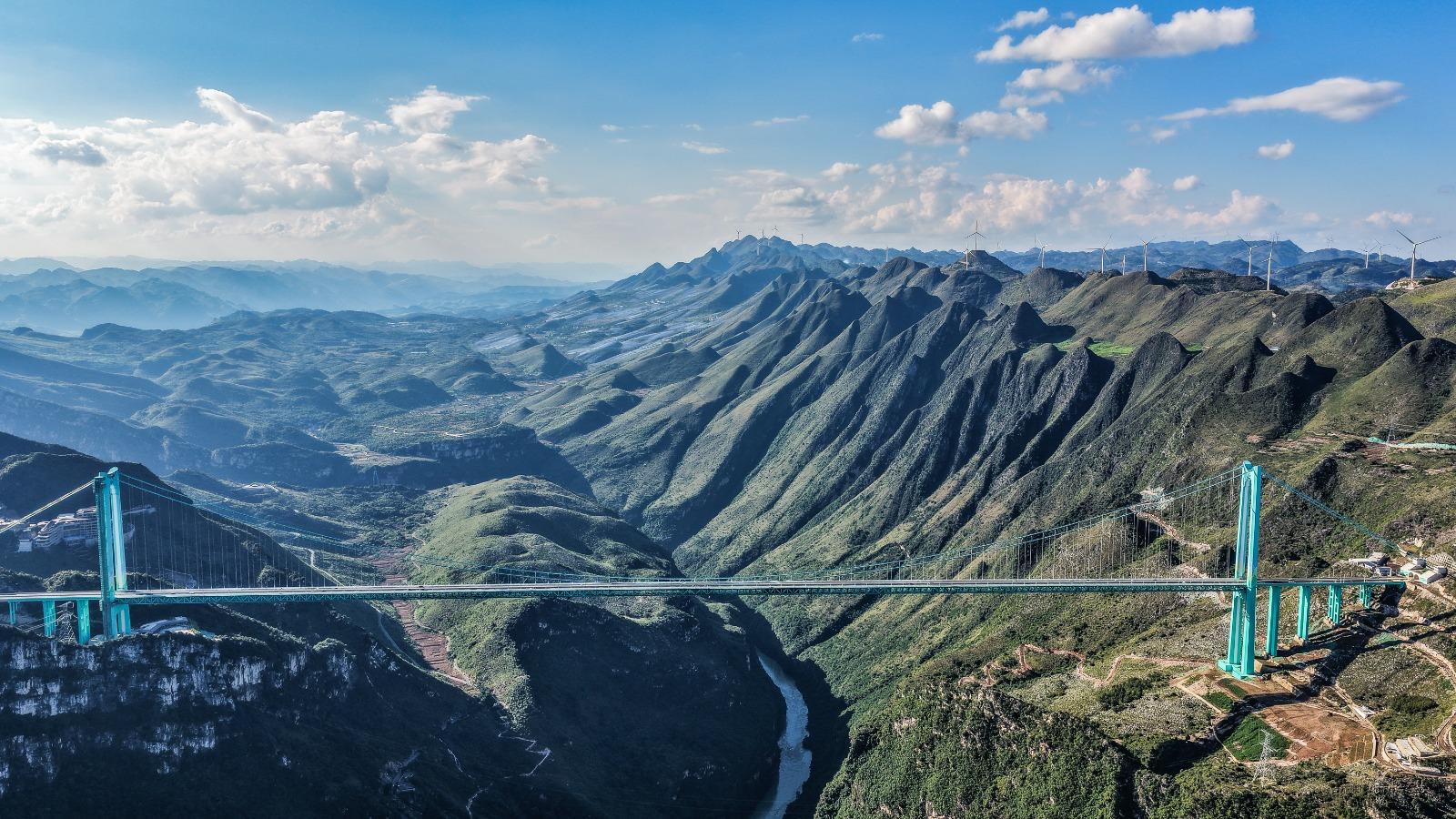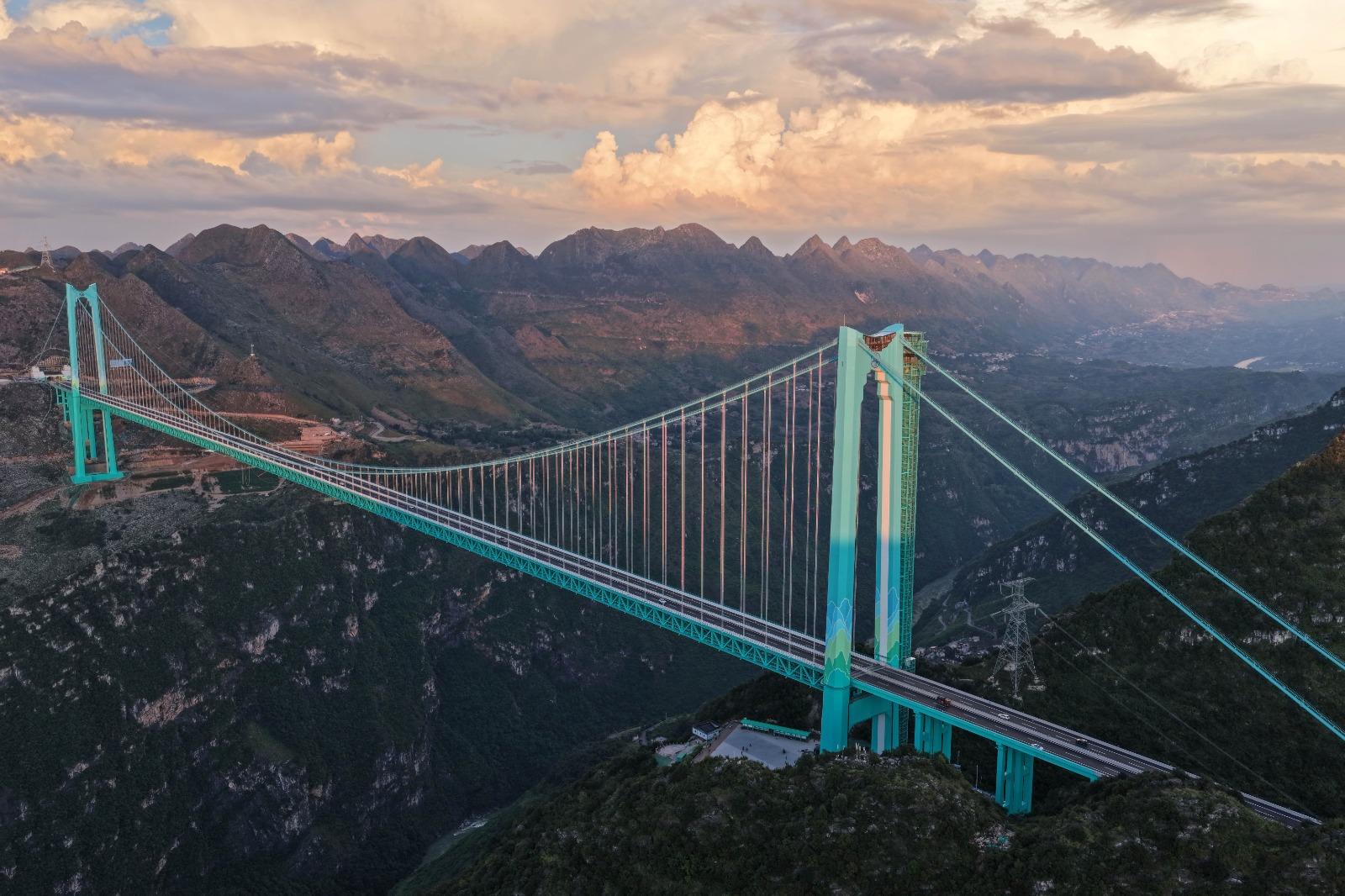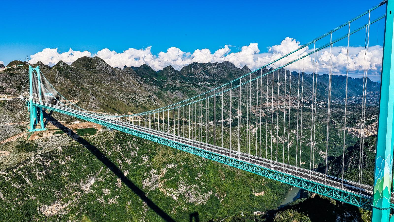 貴州「花江峽谷大橋」昨日(9月28)正式通車。這座橫跨貞豐縣與關嶺縣的「世界第一高橋」,不僅橋面距水面高度達625米,創下世界紀錄,其1,420米的主橋跨度也居山區橋樑世界之冠,成為連通貴州六枝至安龍高速公路的樞紐。