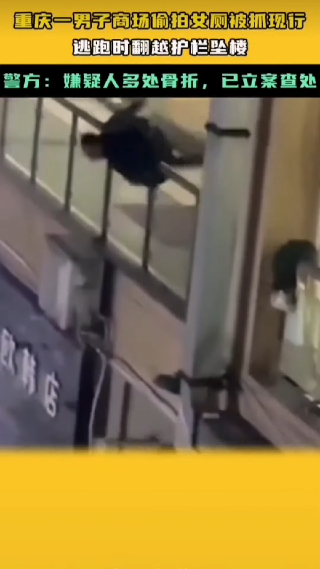 重慶痴漢偷拍女廁敗露 翻欄杆逃跑直墮兩層樓重傷