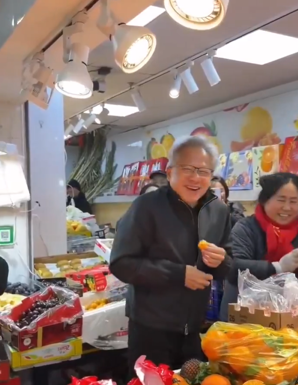#Nvidia CEO #JensenHuang drew online attention in China after he was filmed shopping and handing out red pocket at a wet market in Shanghai on Jan 24.