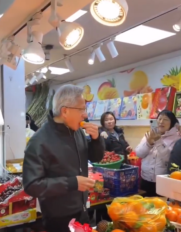 Nvidia黃仁勳突現身上海街市食生果。(互聯網)