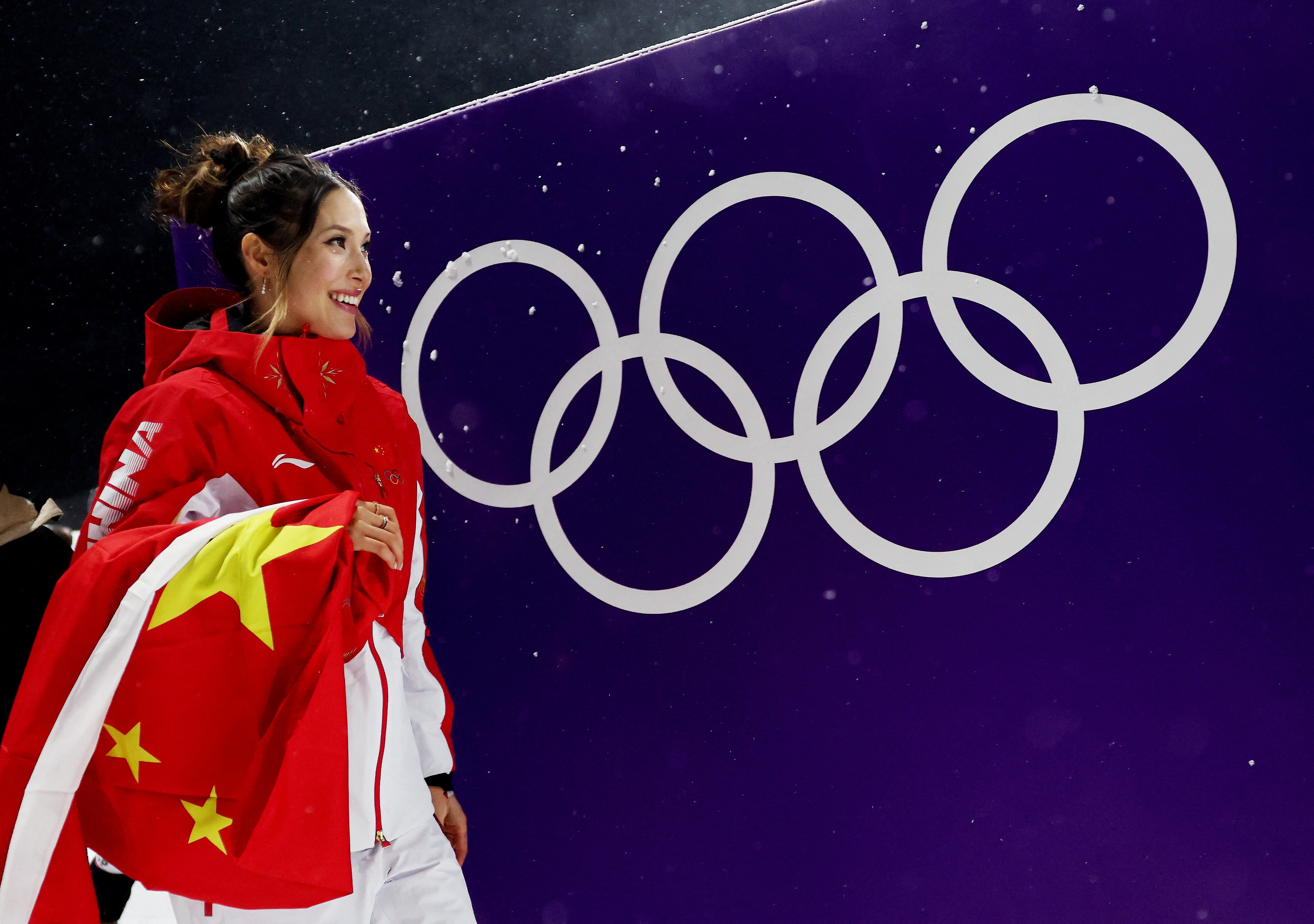 谷愛凌在星期二出戰「自由式滑雪女子大跳台」,獲得她在本屆冬奧第二枚銀牌,連同北京冬奧的2金1銀,個人累積5枚獎牌。(路透社)