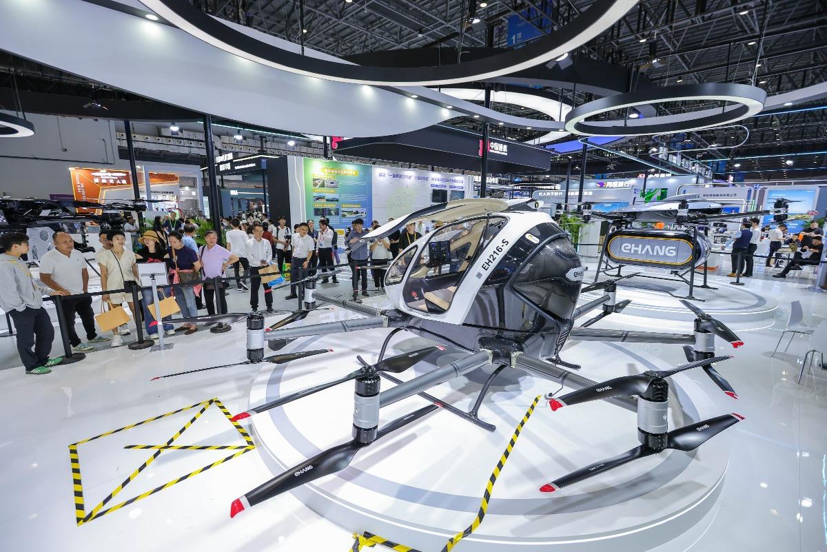 今年文博會將重點展示人工智能、低空經濟等領域的前沿科技和創新應用。全國首個載人無人駕駛技術的低空無人駕駛飛行器EH216-S模型將首次在文博會中亮相。圖為較早前在別的展覽中展出的EH216-S飛行器。(圖片來源:Getty)