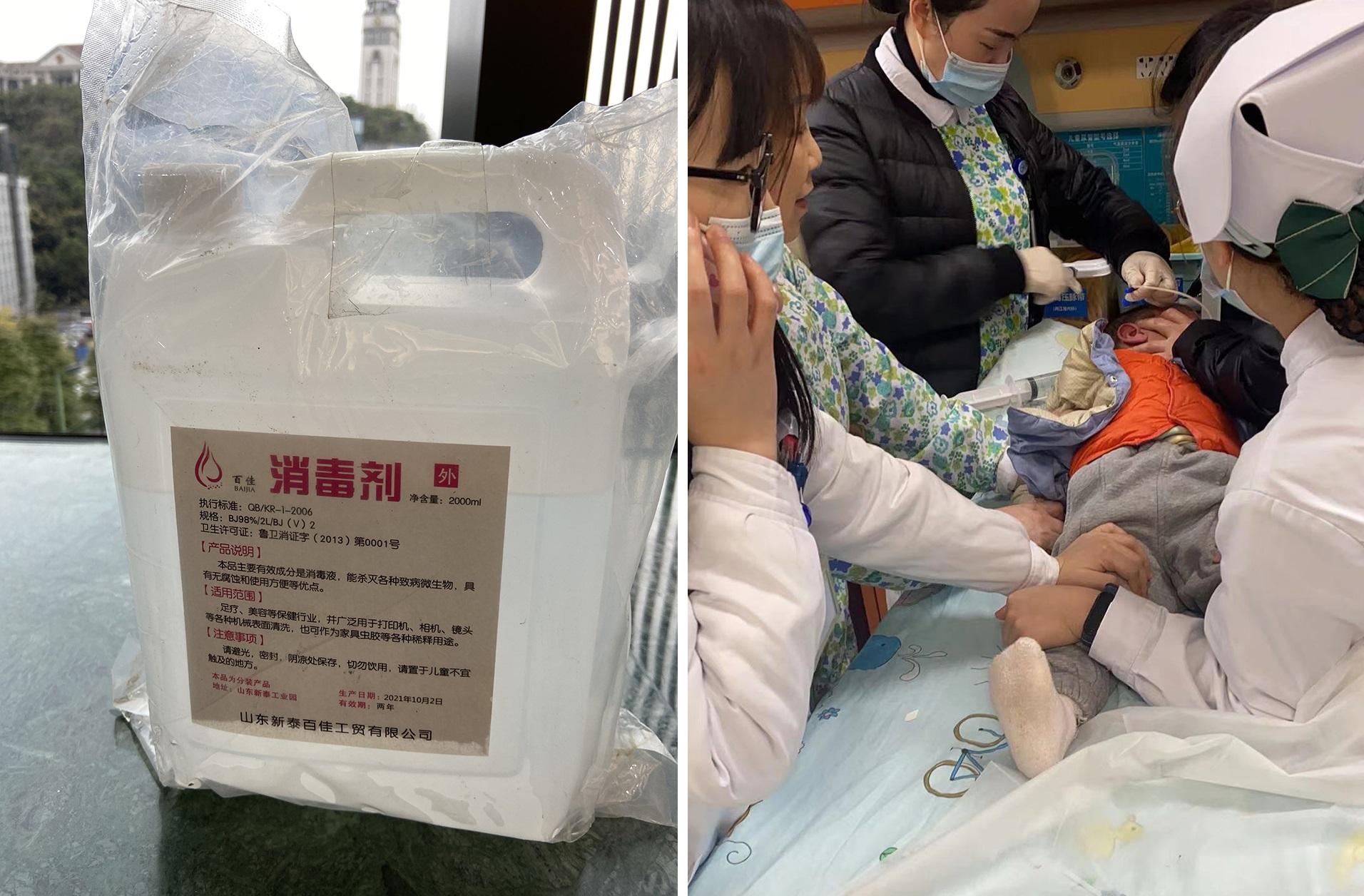 上海「澎湃新聞」報道,重慶一名2歲男童小寧,今年2月貪玩喝了一口消毒劑後送院,未料在血液中驗出甲醇。涉事「百佳」消毒劑是小寧父親去年11月從拼多多一家網店購入,2公升只需15.8元(人民幣,下同)還包郵,商品名稱為「98度工業酒精火療拔罐酒精燈拔火罐燃料2L批發高濃度95度大桶乙醇」。小寧父親事後向涉事網店查詢,對方才承認「甲醇含量50%以上」。