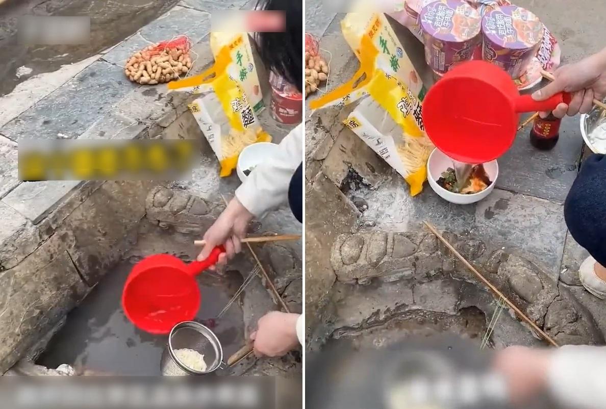 早前也有網民拍片指當地有人用溫泉水煮米粉,但另有正常湯底。當時鎮政府工作人員曾回應稱,溫泉水中的礦物質都經過鑑定,「它的礦物質都是達標的」,由於涉事溫泉坑位處景區,市政府已禁止當地居民在該區洗頭、洗菜。
