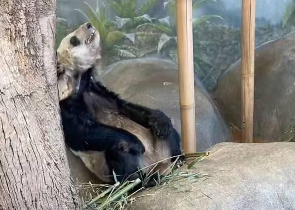 旅美貓熊丫丫被網友發現樣貌瘦骨嶙峋,而且毛髮稀疏。(Twitter@MemphisZoo)
