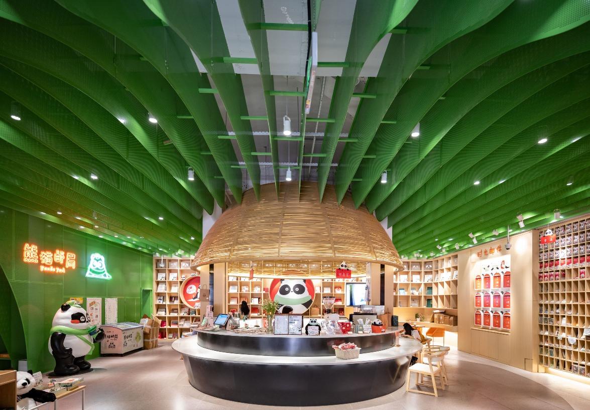 步入熊貓郵局旗艦店内,是一個清新的綠色空間,採用流線型的室內設計,猶如置身大熊貓最愛的竹林之中,非常特色。