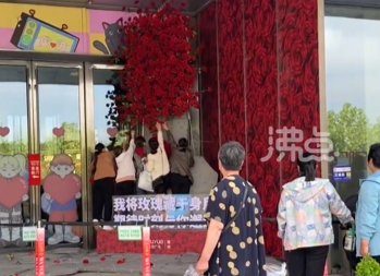 《沸點視頻》19日報道,位於安徽省滁州市的吾悅商場因應520網絡情人節,在門口裝飾一朵朵鮮紅玫瑰,提供給顧客拍照打卡。有民眾卻目擊到驚人一幕,錄影上傳網路。影片中只見地上散落玫瑰花,一群大媽互相推擠、墊腳摘花,還有一位大媽甚至爬上裝飾台頂端去摘花。