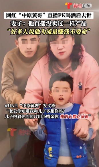 5月,內地一名知名直播主「三千哥」才因在直播PK喝酒,短短時間內灌下至少4瓶白酒,隔天被發現陳屍住處,年僅34歲,令人不勝唏噓。然而經過不到半個月,另一名26歲直播主「中原黃哥」也於6月2日凌晨,同樣因在直播間PK喝白酒後離世,諷刺的是,他上個月參加「三千哥」的葬禮時還表示「以後要少喝點酒」。