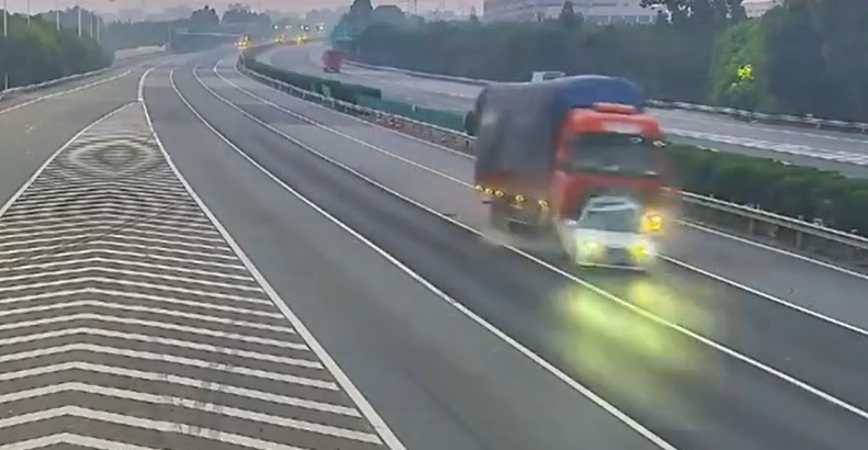 貨車以高速撞上前方私家車。(圖/翻攝微博@百姓關注)