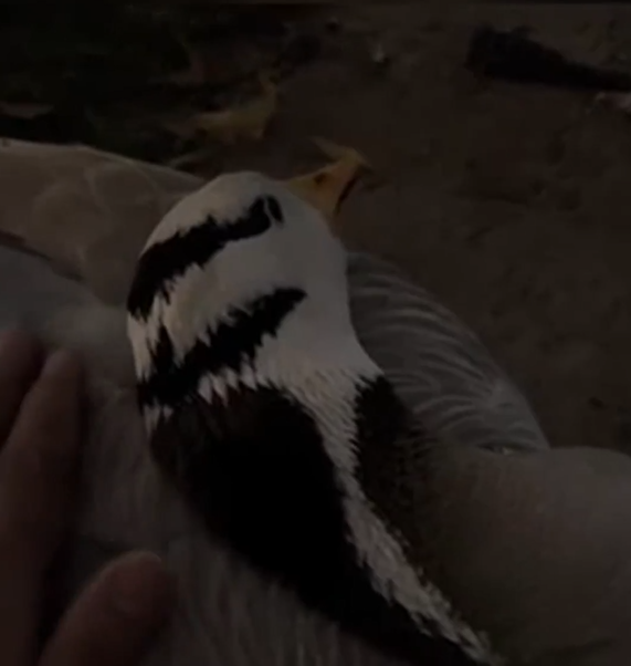石家莊的網紅斑頭雁,遭到遊客踢踹導致頸椎第二節骨折,不治身亡。(圖/翻攝微博@觀察者網)