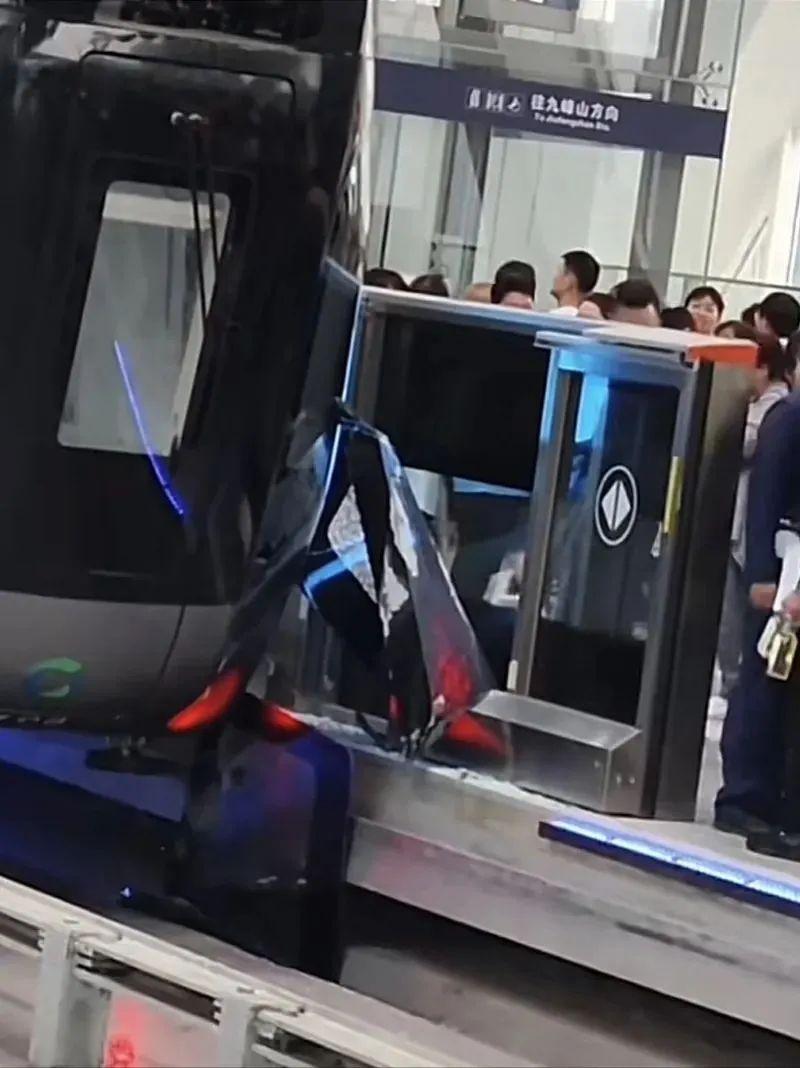 社交平台流傳畫面所見,一輛空軌列車停靠在月台上,列車門及玻璃被砸爆在空軌和安全柵欄之間,月台上有很多乘客等待。有網民稱聽說好像是有乘客弄破了,聽着工作人員在廣播通知,提醒大家注意安全。另有網民表示自己是被困者之一,在車廂內被困了十多分鐘,已經出現頭暈缺氧,有小孩子都流汗了,玻璃起霧,外面工作人員不開門,促使車廂裡有人砸玻璃,後面車門就開了,逃出來了。