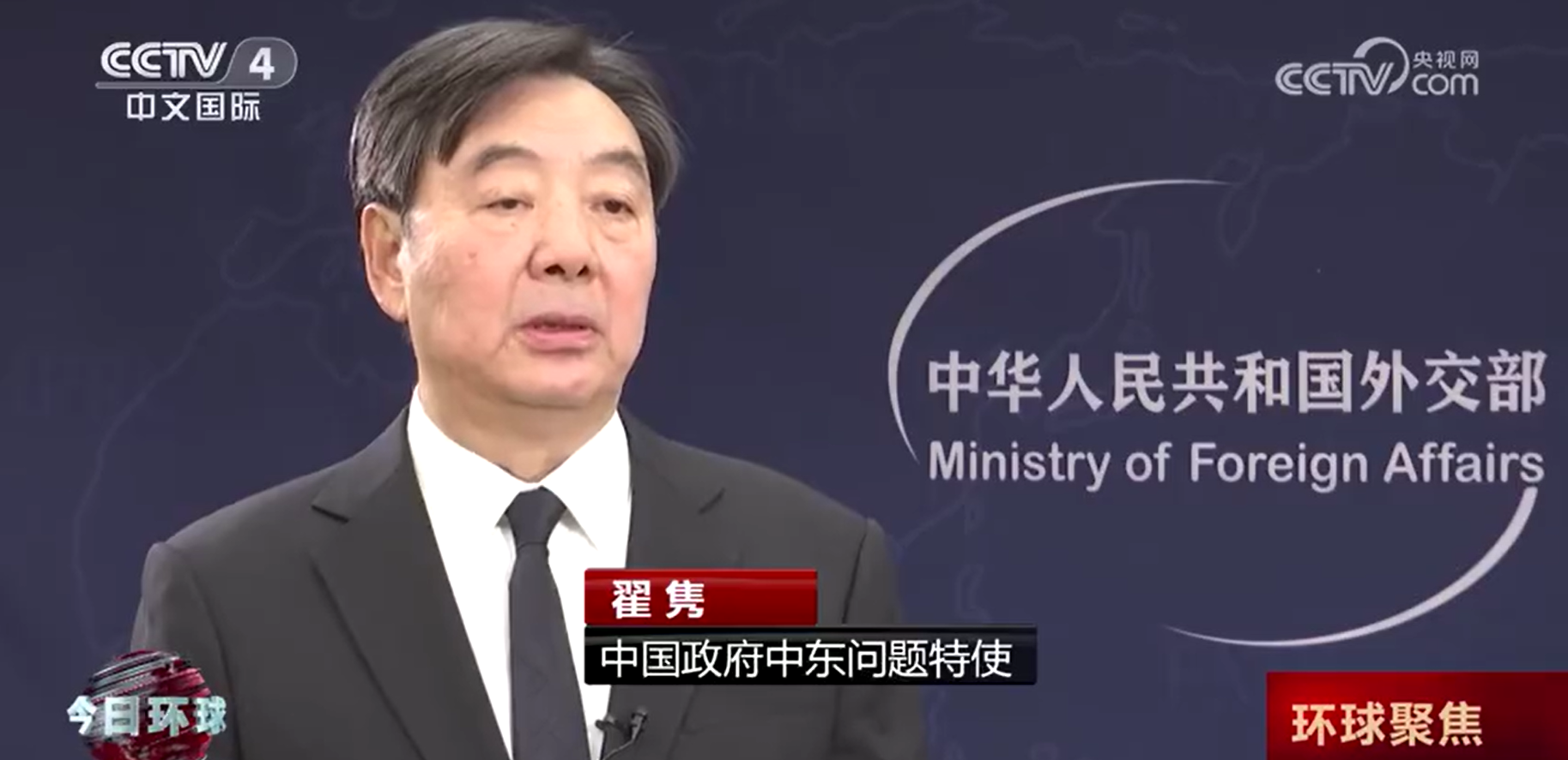 翟雋14日接受《央視》節目「藍廳觀察」採訪時談及了北京對「巴以衝突」的立場以及中國公民的傷亡情況。