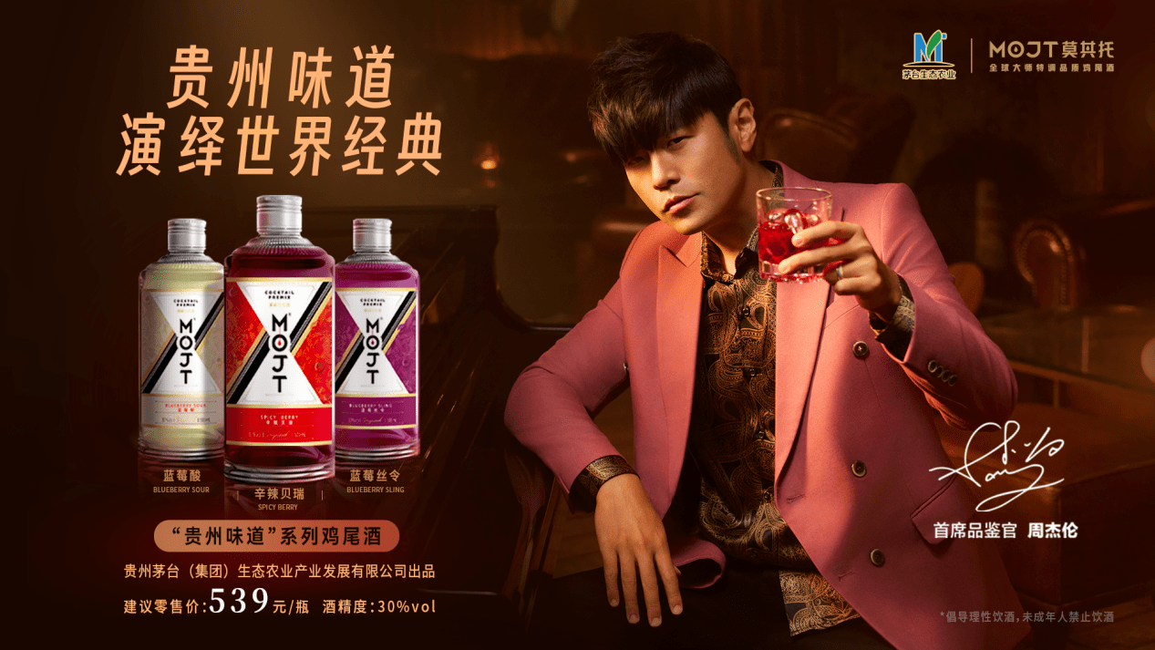 「茅台生態農業公司」與雞尾酒公司「MOJT莫其托」,20日在廈門舉辦「微醺時代」新品發表會,宣布推出共同研發的「貴州風味」系列雞尾酒,「茅台雞尾酒」請來大咖天王周杰倫擔任產品代言人。