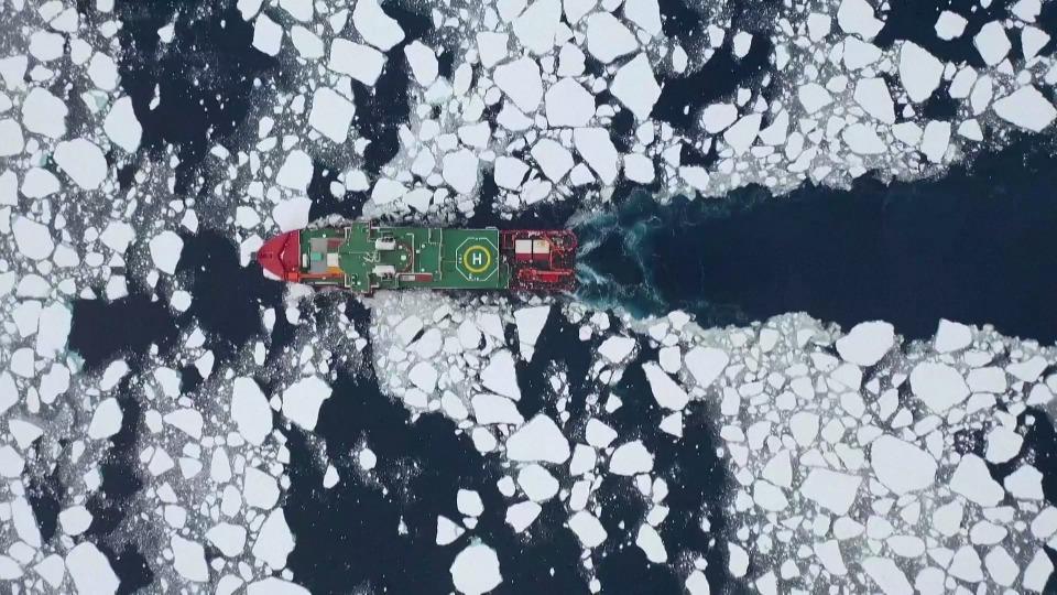2024年1月6日,南極洲,「雪龍2」號在阿蒙森海航行,開闢水道。(圖片來源:視覺中國)