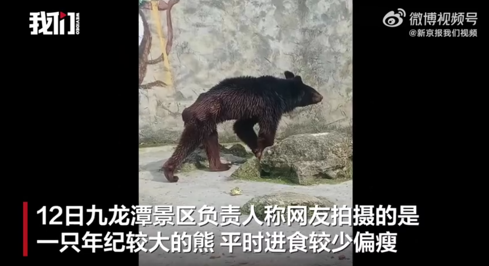 網友近日公布一段動物園黑熊瘦成「皮包骨」的畫面。(圖/翻攝微博@新京報我們視頻)