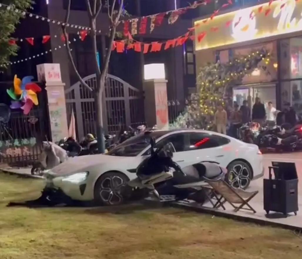 康男開車瘋狂衝撞附近電單車,現場一片混亂。(圖/翻攝《澎湃新聞網》)