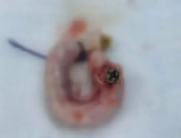 螺絲釘在體內一段時間已出現生銹現象