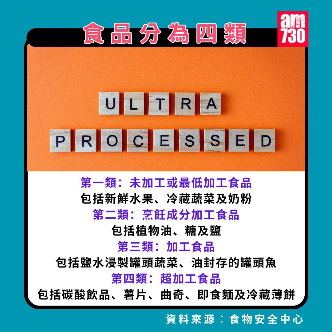 超加工食物|癌症年輕化一大元兇?(am730製圖) 超加工食物|是甚麼?(am730製圖) 超加工食物|食品分為四類(am730製圖) 超加工食物|製作過程(am730製圖) 超加工食物|影響(am730製圖) 超加工食物|健康均衡的飲食(am730製圖)