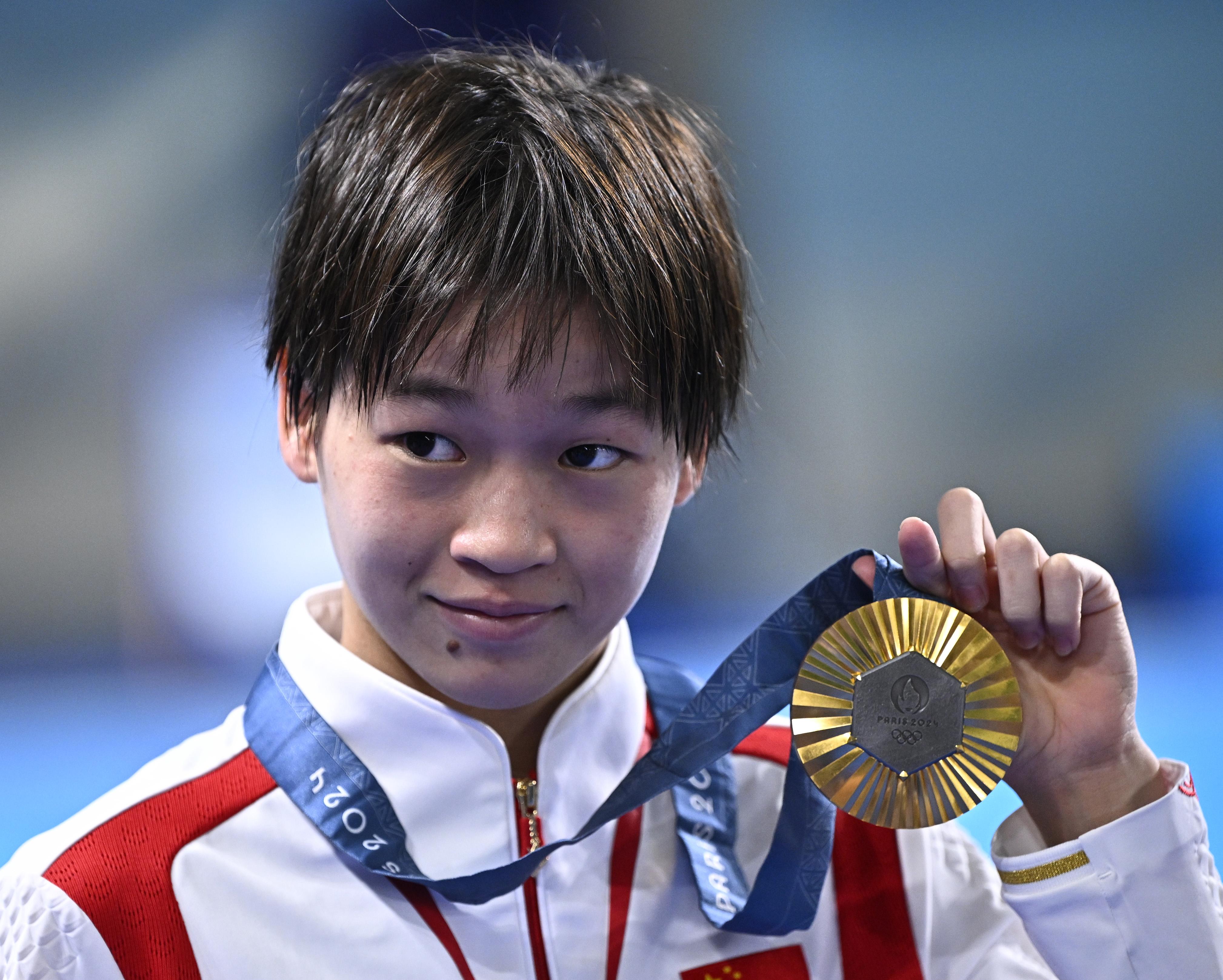 全爸的手機桌布是全紅嬋東京奧運奪金的照片。(《九派新聞》) 全紅嬋家門口附近的「小吃街」。(《九派新聞》) 全紅嬋在巴黎奧運奪下2面金牌。(新華社)
