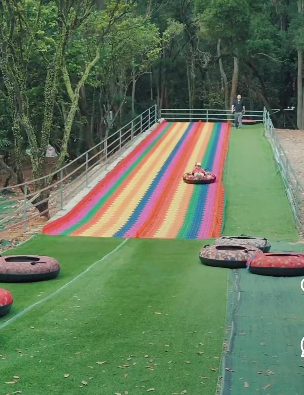 園內還有一個無動力樂園,以木材、繩子、沙子、樹木、竹子等自然材料,打造出叢林穿越、魔網樂園、滑索、七彩滑道、三角魔網、沙池尋寶、小木屋等野外遊戲,讓孩子放下手機、盡情在大自然中玩樂。
