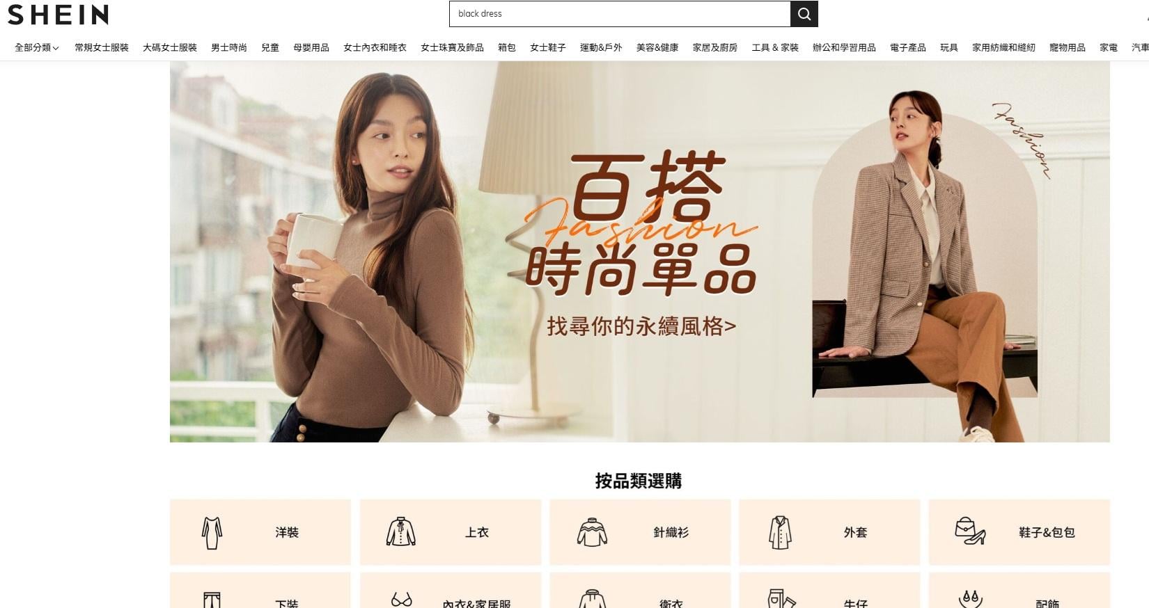 Shein出口美國產品加價 最高加達377%。(Shein香港官網截圖)