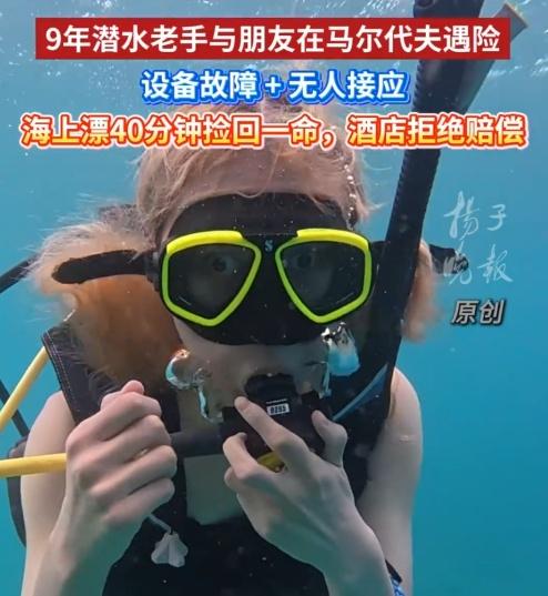 近日一名內地女子,帶朋友到馬爾代夫體驗水肺潛水,詎料接連發生意外,先是遇到設備不合格,之後結束潛水時,酒店竟然沒有船來接,令她們和教練在海上漂浮逾40分鐘,慶幸最終被一艘漁船救起。事後女事主要求酒店道歉、賠償並進行改進,然而遭到酒店的拒絕。