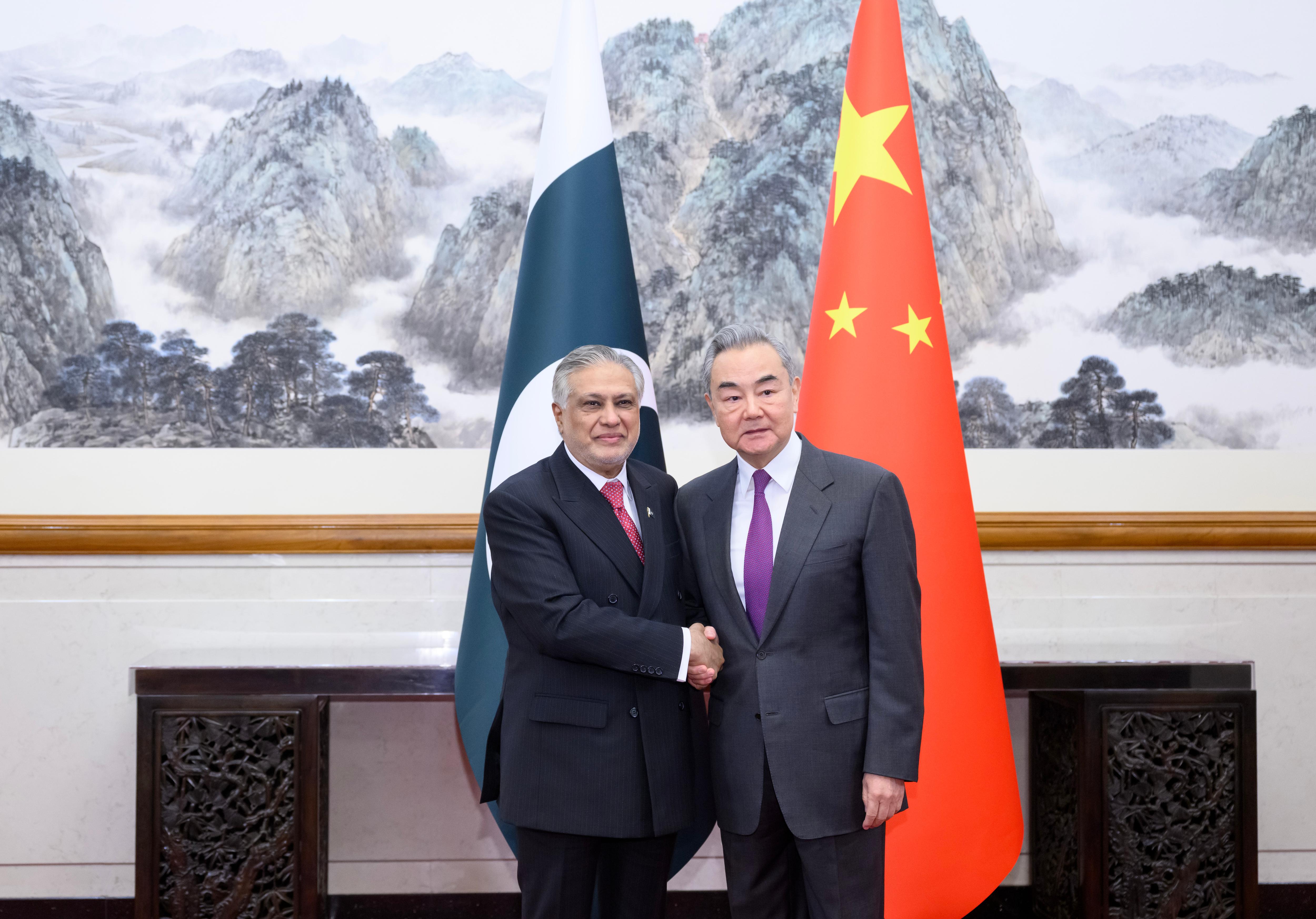中共中央政治局委員、外交部長王毅在北京同巴基斯坦副總理兼外長達爾舉行第七次中巴外長戰略對話。 (新華社)