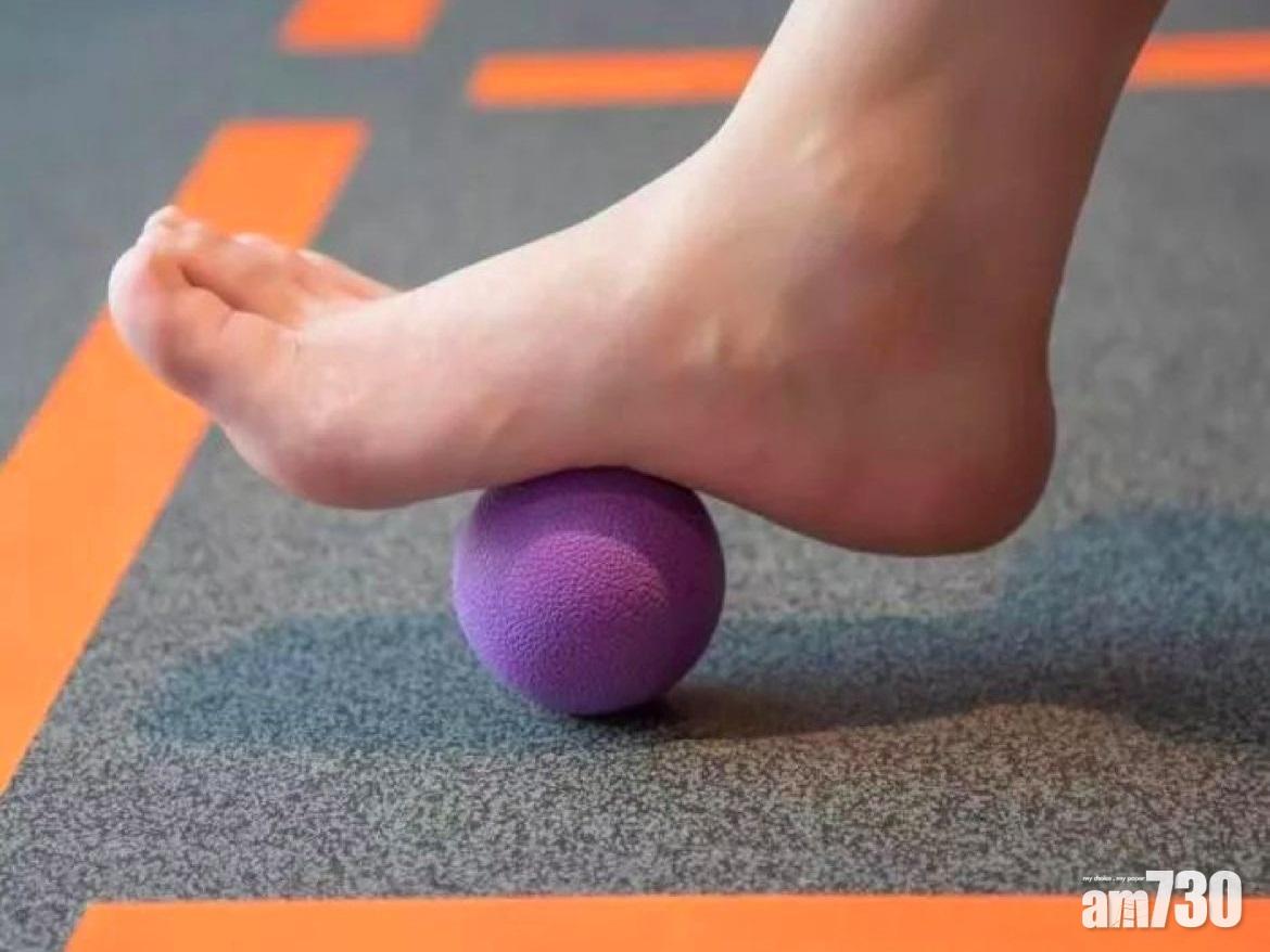 初期可先以軟網球,放在腳底畫圓輕踩3至5分鐘,習慣後就可用較硬的球作深層按摩。(互聯網圖片)