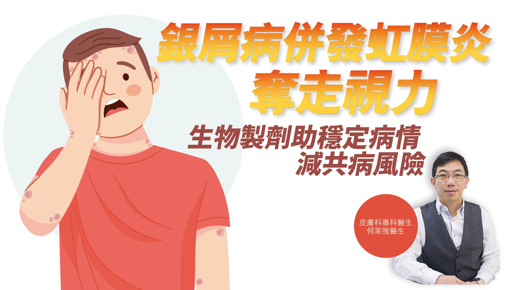 為甚麼以皮膚症狀為主的銀屑病,最終奪走了阿豪的視力呢?皮膚科專科醫生何家強指出,銀屑病屬於自身免疫系統疾病,並不單純是皮膚病,身體某些細胞會分泌發炎因子去攻擊其他身體器官,並會併發不同共病︰「例如較常見的銀屑病關節炎、代謝綜合症及心腦血管疾病等,去到像虹膜炎這種眼疾,一旦眼睛結構損毀,就不能百分百復原。」