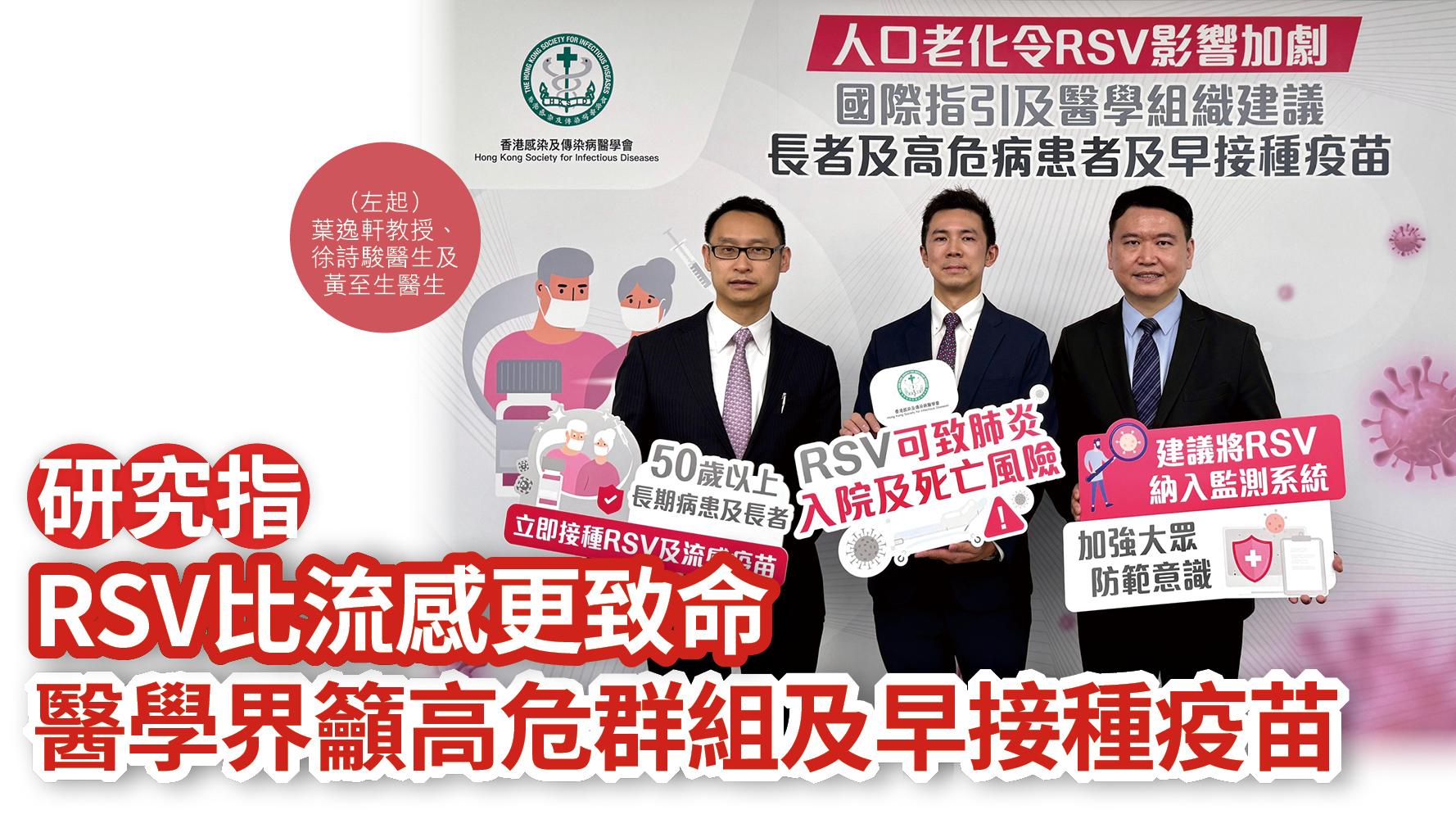 呼吸道合胞病毒(RSV)症狀與流感相似,容易混淆,對長者和慢性病患者帶來更高死亡風險。香港大學一項研究顯示,RSV住院患者的院內死亡率約為流感的兩倍。醫學界聯合建議將RSV納入常規監測,並呼籲50歲以上高危群組盡快接種預防疫苗,降低重症風險。