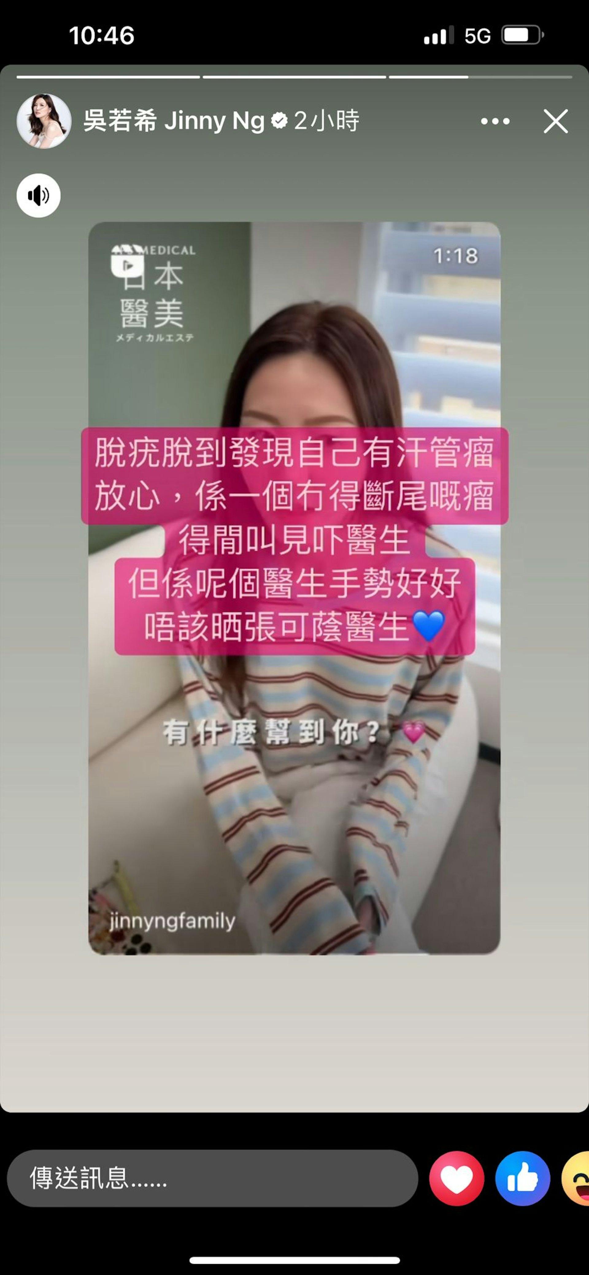 吳若希早前去脫疣,始發現自己有汗管瘤。