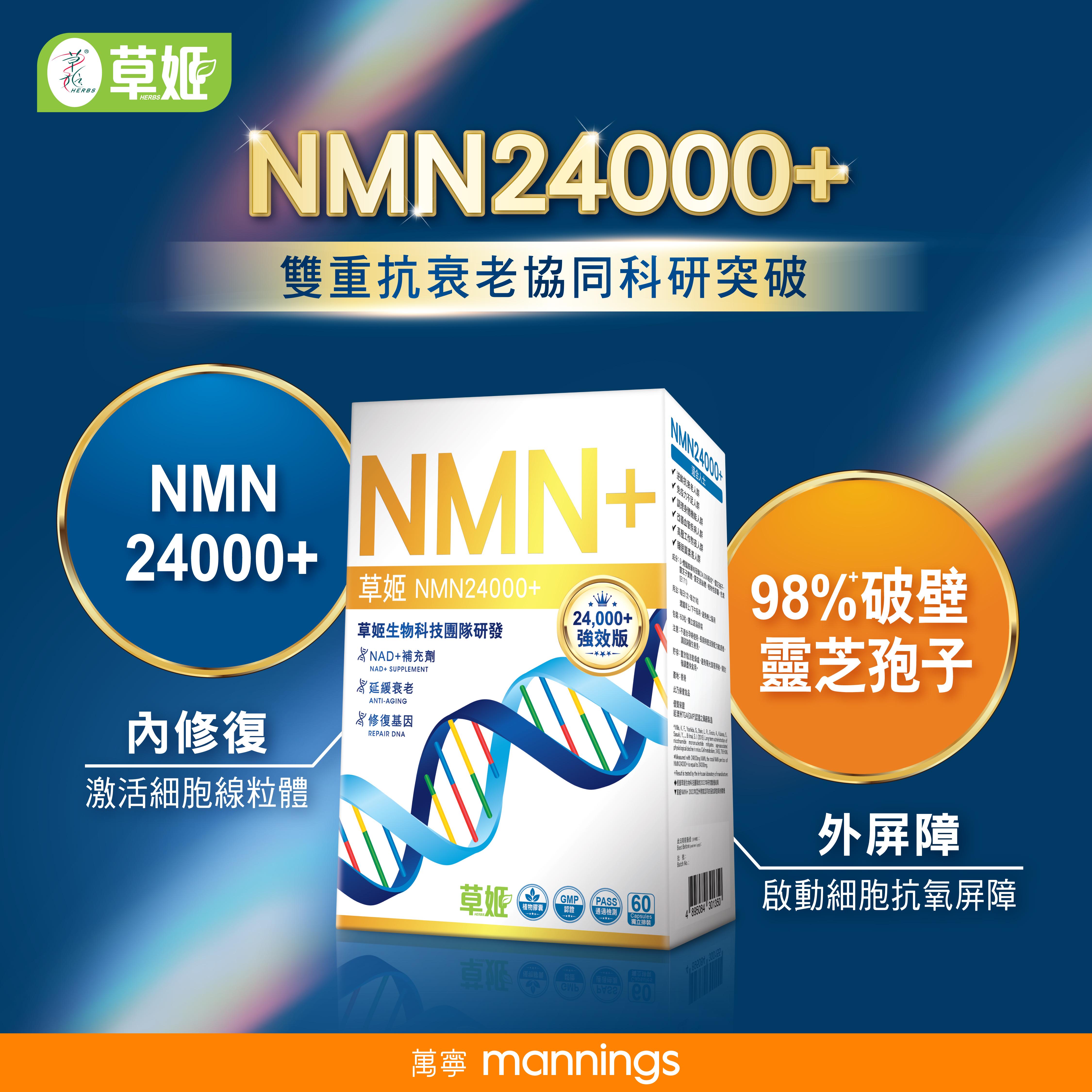 科學園科研權威證實「草姬NMN24000+」的配方「NMN+98%*破壁靈芝孢子」對抗衰老產生協同效應,補充NMN高達2.4倍■,直接提高體內NAD+水平,使88%亞洲人細胞因抗氧化而變得年輕◇,令高達80%亞洲人細胞內的DNA形成保護◇,令身體回復最健康的狀態。