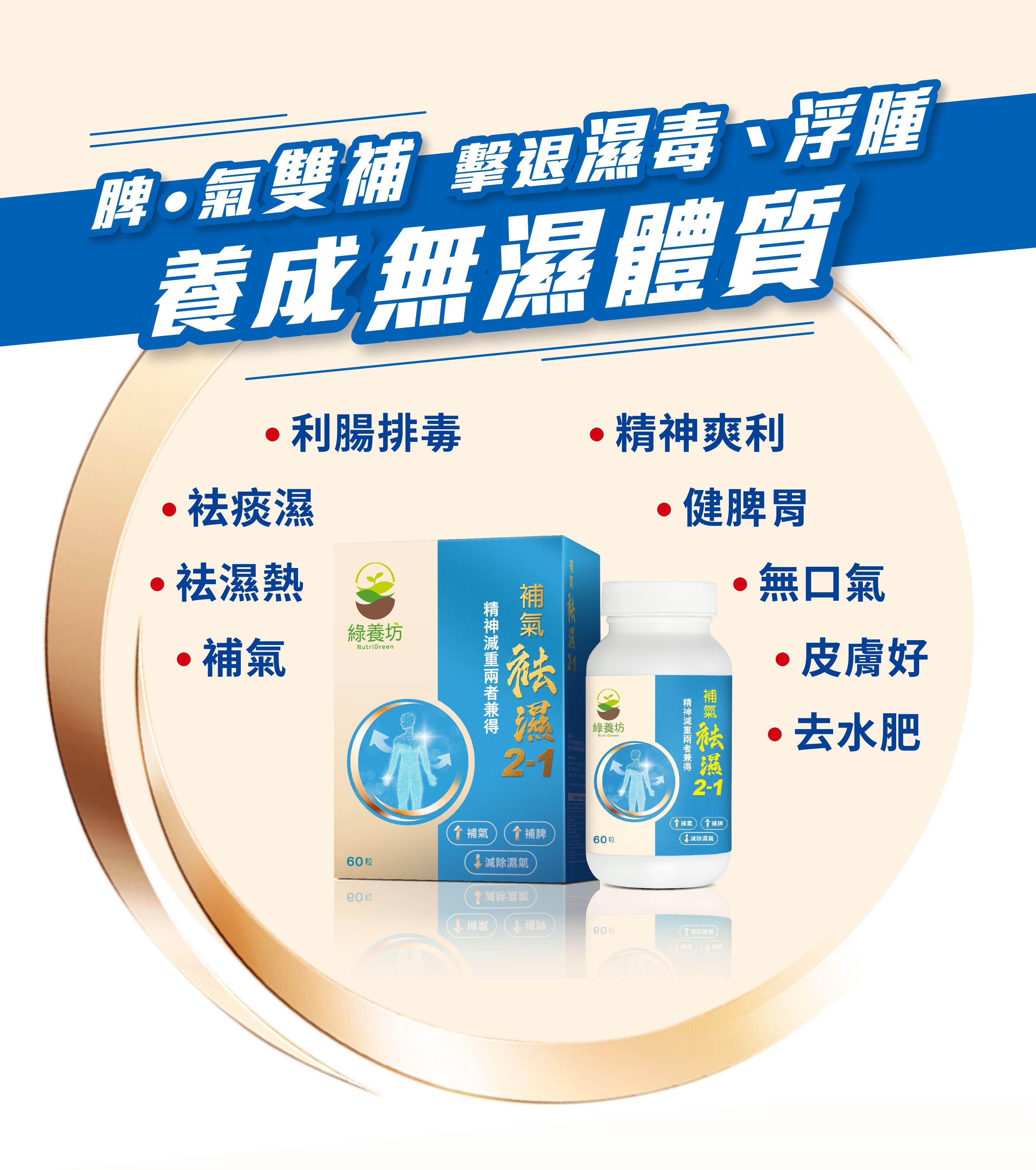 推薦大家一款袪濕好物—「綠養坊補氣祛濕2-1」,蘊含多種天然中草本成分,獨有人參配方,專為「健脾補氣」而設,促進養分吸收與水液運行,同時利腸排毒,加速循環,排出濕邪毒素。全身通暢,濕氣浮腫自然消散,只需2-1配方,3效讓你袪濕、健脾、補氣,改善濕重、濕熱、痰濕體質,輕鬆擊退濕毒與浮腫!