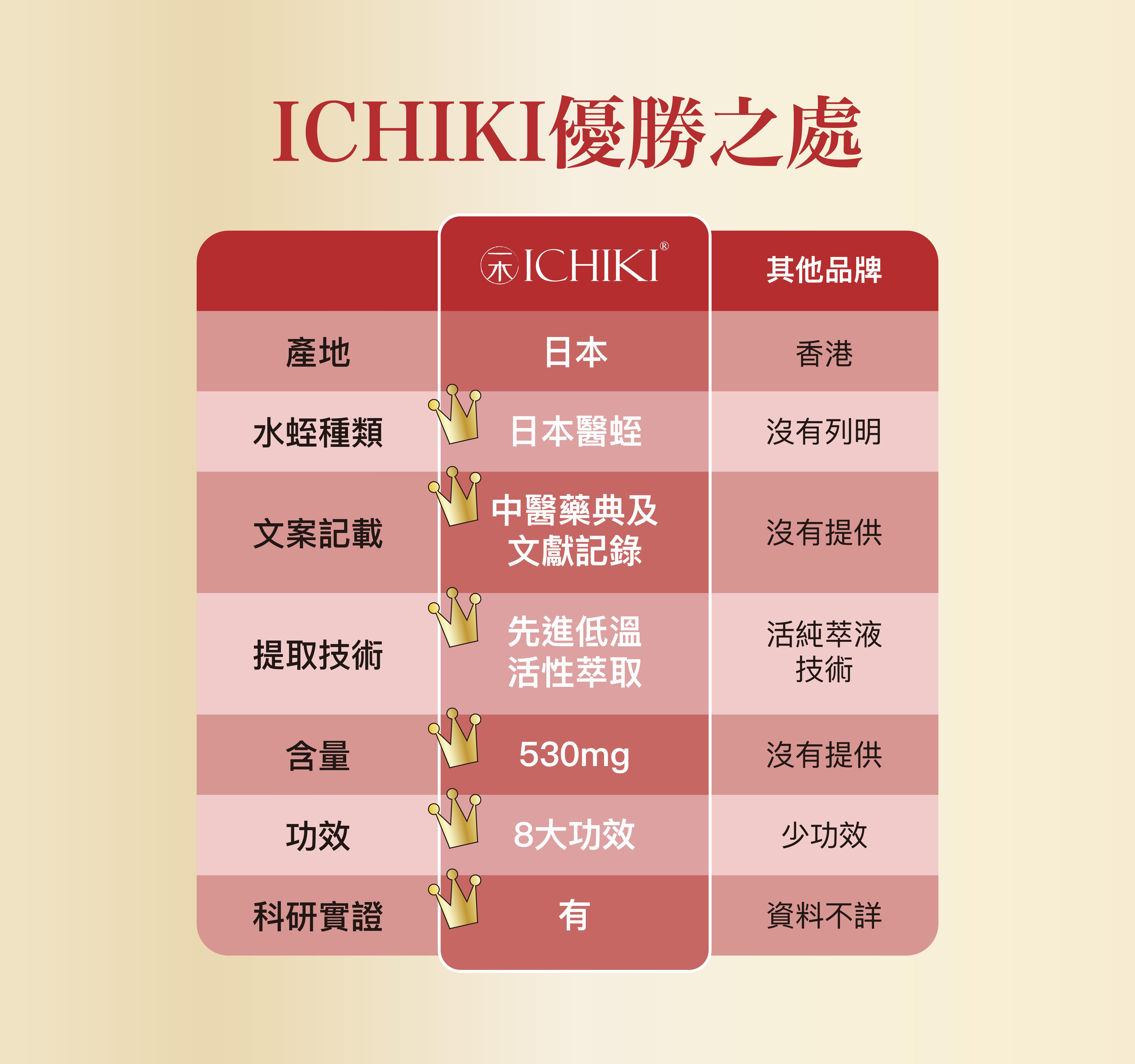 ICHIKI天然水蛭素從日本醫蛭中提取出高含量的天然水蛭素,易吸收、不傷腸胃,無毒無副作用。科研實證ICHIKI天然水蛭素有強效溶解凝固能力,對維持心血管健康有良好作用。