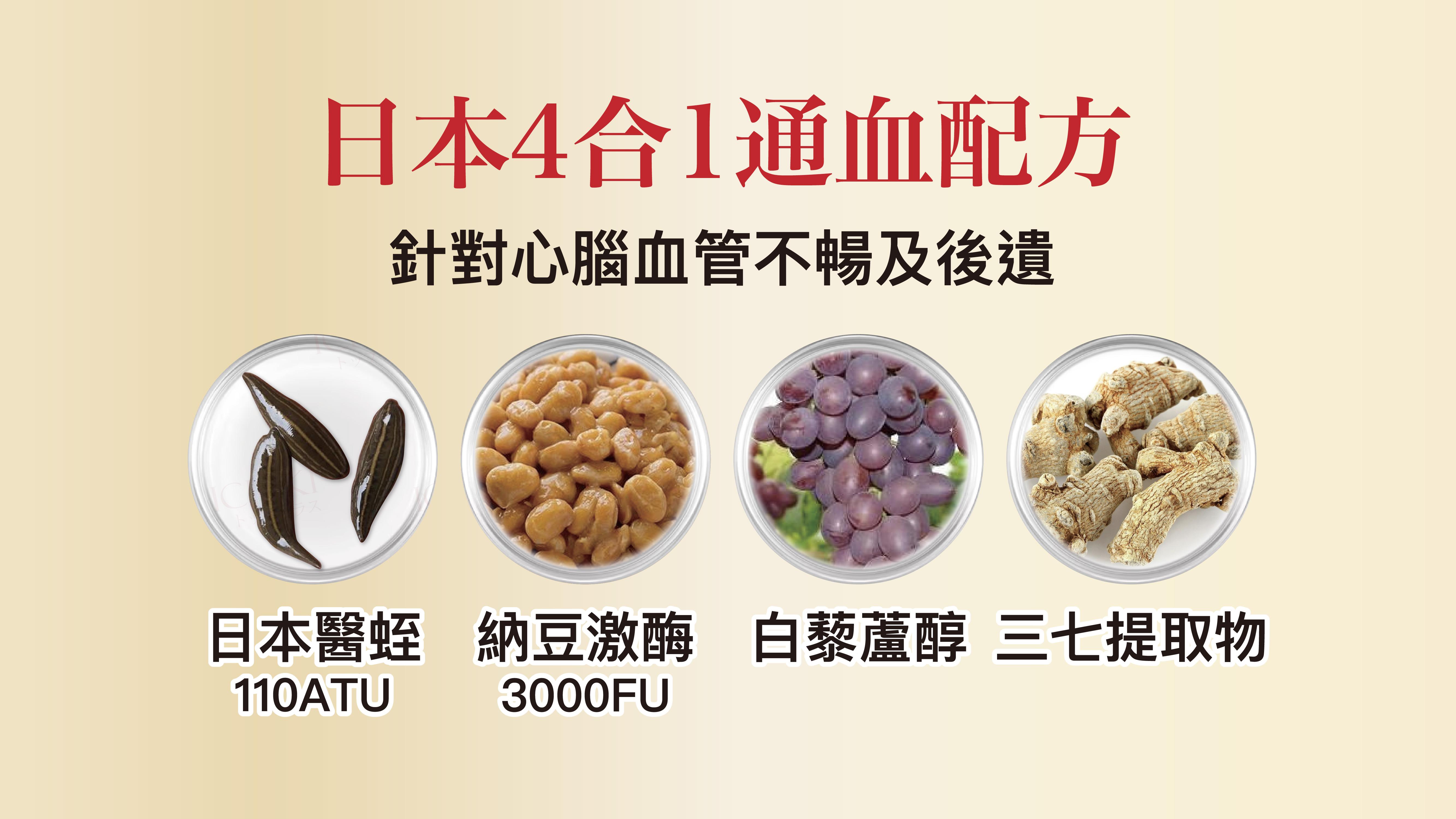 日本專效4合1通血配方 針對心腦血管不暢及後遺