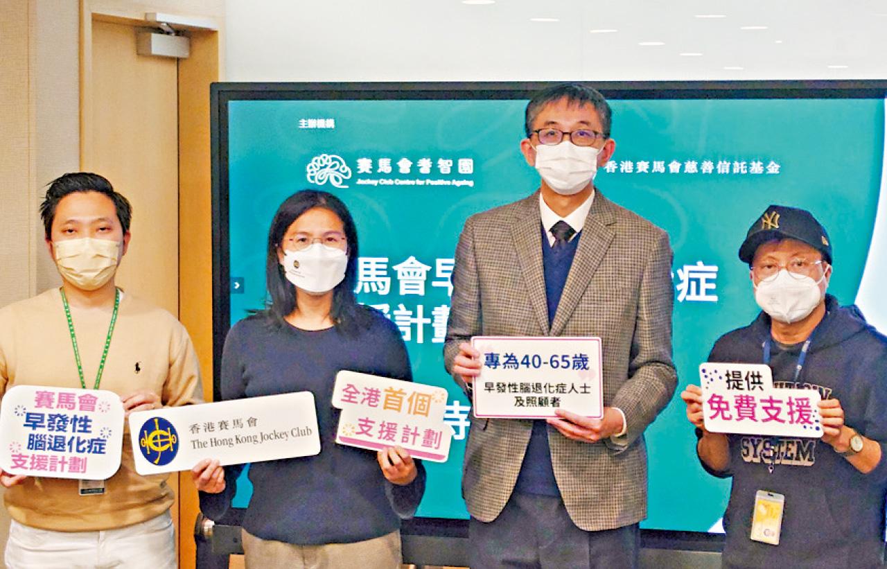 為幫助早發性腦退化症患者及其家庭,賽馬會耆智園推出為期3年的「賽馬會早發性腦退化症支援計劃」,免費支援40至65歲懷疑患病或已確診的人士及其照顧者。個案經理兼註冊護士潘曉陽解釋,「計劃為未確診者提供認知能力測試及相關評估,有需要可轉介專科醫生作進一步診斷;確診後將加入為期3至6個月、共10節的服務,包括疾病知識、照顧技巧、溝通策略、壓力及情緒的應對等,過程有個案經理跟進;有需要也可轉介至專科或言語治療、職業治療等專職治療。現時目標為支援250個家庭。」