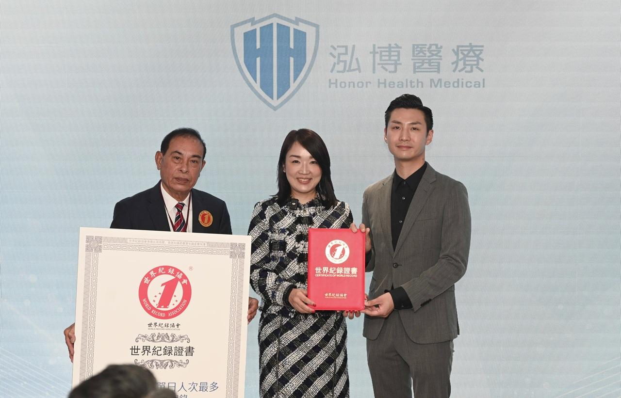 活動當日,泓博醫療團隊以精準技術為超過100位患者提供治療,成為首間醫療服務機構成功創造「單日脫疣人次最多」世界紀錄。世界紀錄協會高級認證官吳華江先生親臨監證,並即場頒發認證書予泓博醫療兩位集團董事Janet Ip及Stephen Cheng,正式宣佈確認泓博醫療創立「單日脫疣人次最多」的世界紀錄。大會同時特別舉行儀式,感謝泓博醫療、朗豪坊及各機構協辦並支持活動,並表揚泓博醫療的醫療專業與社會貢獻。泓博醫療代表表示:「疣病毒屬可傳染性,不僅影響外觀,更可能對心理健康造成長遠影響。我們希望透過這次活動,結合醫療與慈善力量,讓更多人認識及早治療的重要性,重拾健康與自信。」