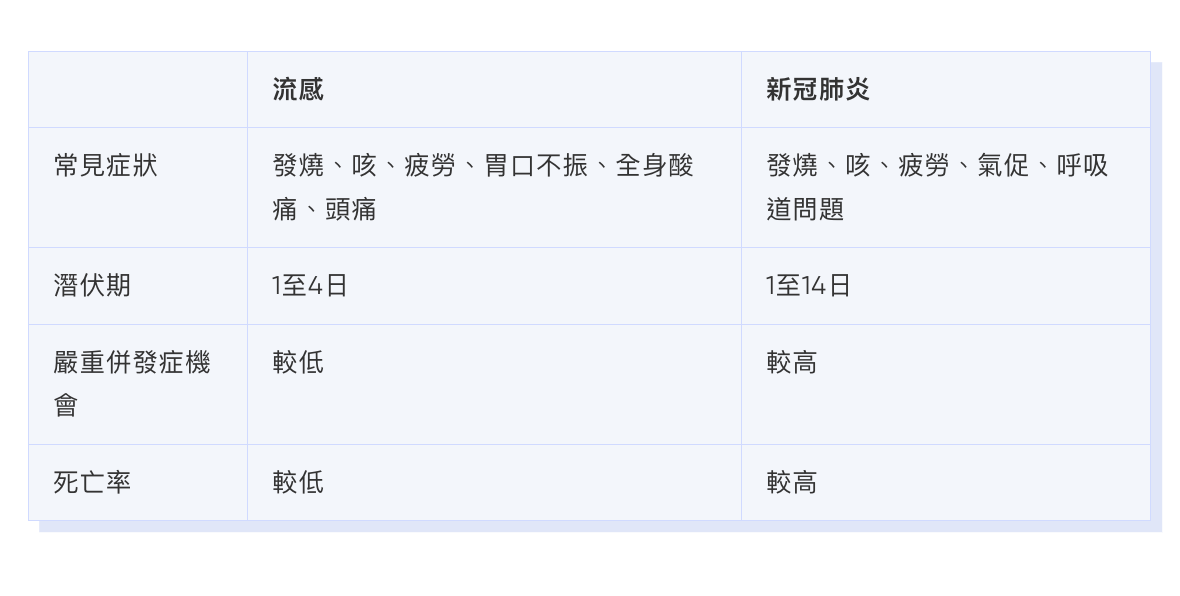 甲型流感與新冠肺炎有什麼分別?
