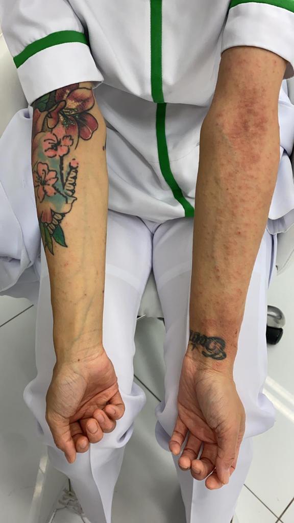 Ashley分享指,從小到大都被濕敏困擾,每晚會因為痕癢難擋而無法入睡,「好像有好多螞蟻爬滿全身」。一發作就會癢得抓不停,不時會因為過度抓癢導致破皮、流血化膿、血水等,傷口亦會出現持續疼痛。除了肉體上的痛苦,傷口更會引來其他人的奇異目光,令Ashley即使在炎炎夏日,都要穿著長袖衣物遮掩傷口。