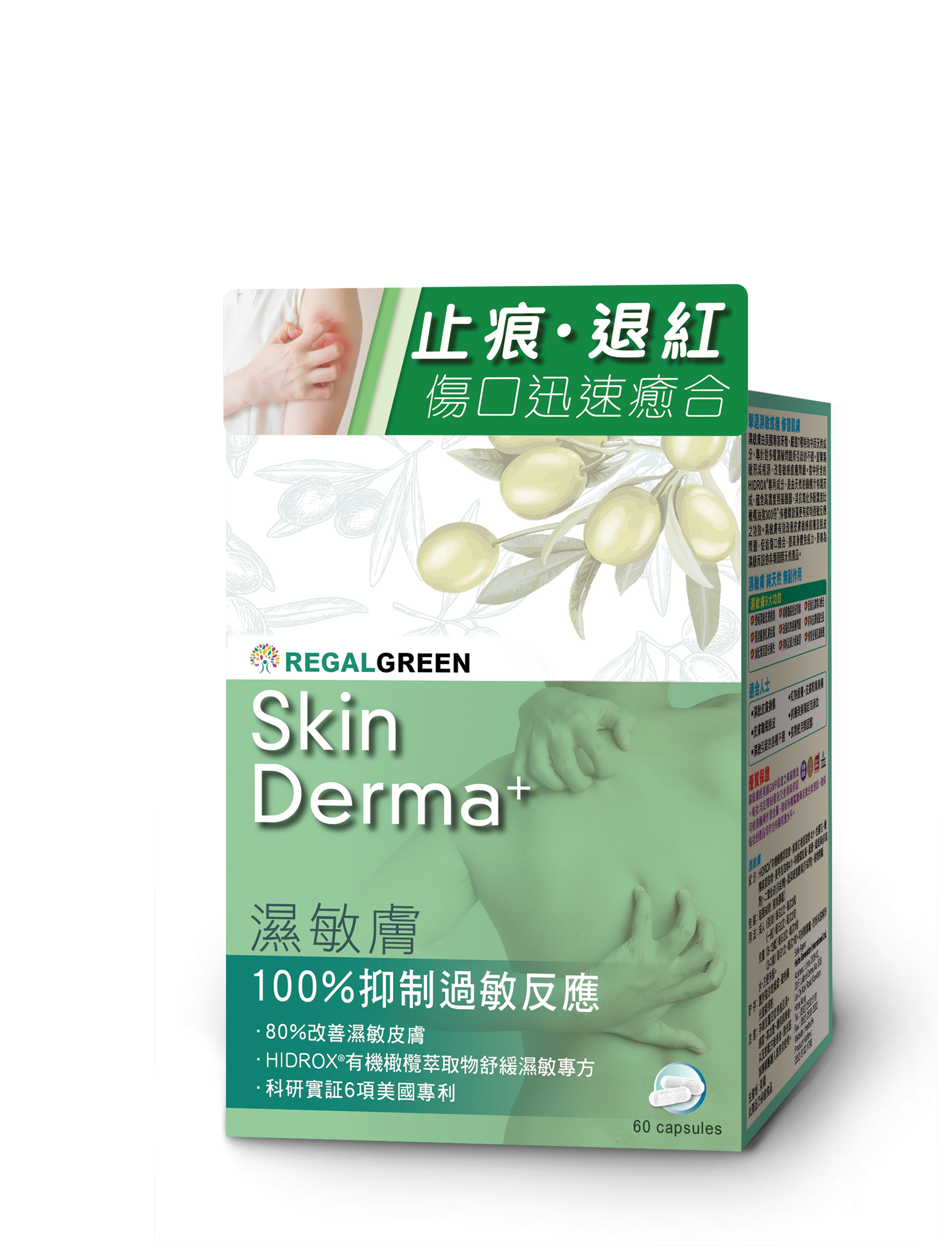 Regal Green濕敏膚能夠改善皮膚敏感痕癢、發紅及脫皮問題,促進傷口癒合,持續食3個月同時提升肌膚免疫力,修復受損肌膚細胞,促進健康肌膚生長,擊退濕敏。