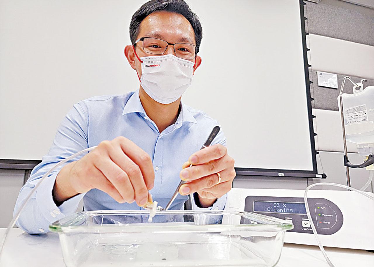 近年醫學界發現電解治療適用於植體清潔之上,更有深層清潔效果。季超解釋,「治療以電解原理於植體表面製造氫氣泡,直接將植體表面的細菌膜破壞及清潔,治療植體牙周病。」每顆植體以電解清潔只需2分鐘,過程不會傷害植體表面、健康牙齦及牙槽骨,更可在植體表面重建其化學特質,再次擁有骨整合的能力。「如果病情得以改善,植體會有較大機會得以保留,免卻將植牙推倒重來的麻煩和成本。」