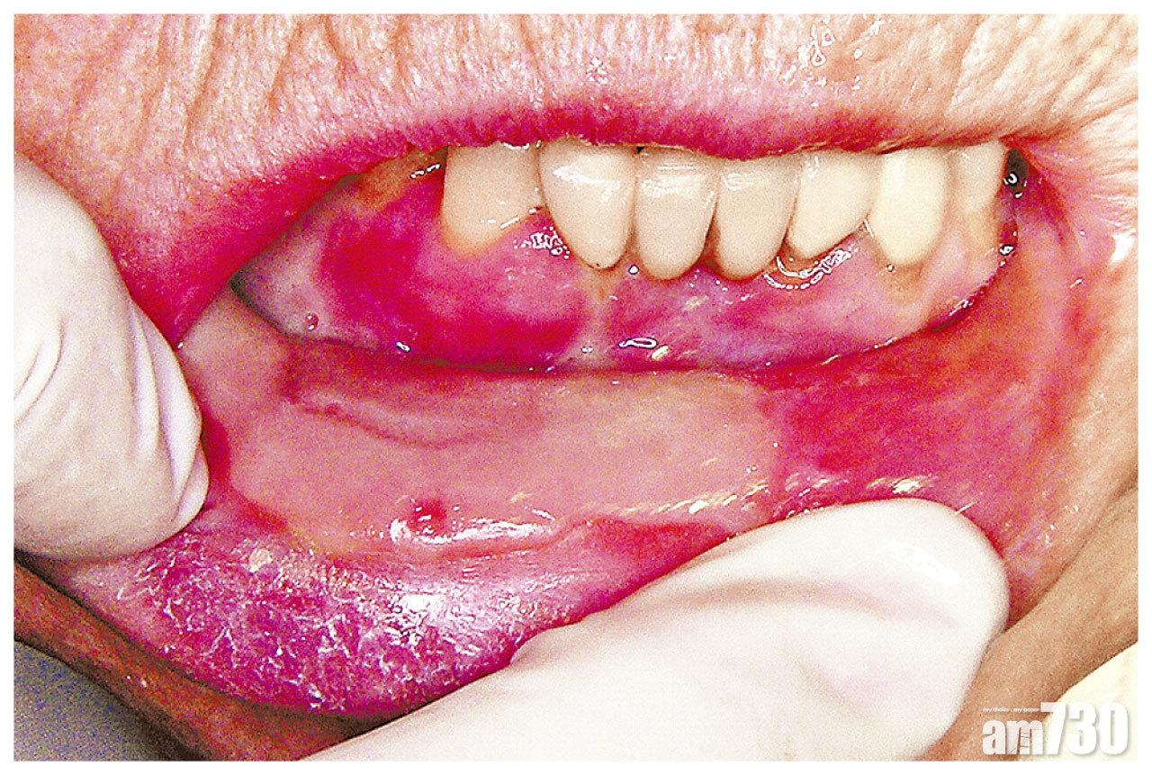 癌症患者的治療副作用因人而異,亦視乎化療所用的藥物、電療的次數和劑量而定。臨床腫瘤科專科醫生施俊健指,較常見有脫髮、噁心、免疫力下降等,「因為電療和化療除破壞癌細胞外,亦會破壞生長快速的正常細胞,所以臨床上也常見口腔黏膜炎,尤其頭頸癌患者。口腔黏膜炎多於化療後4至5天出現,7至10天形成潰瘍,而且範圍變大、數目增加;而口腔黏膜接受中度劑量或以上電療,也較易出現此副作用。」如果情況嚴重,患者或感咀嚼、吞嚥困難,甚至無法進食要經鼻管輸入營養液,亦有可能影響治療進程。