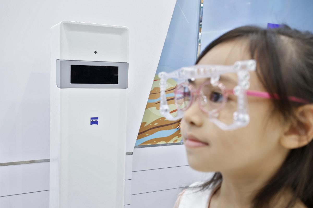 「蔡司數碼中心定位儀器i.Terminal 2」可以根據眼鏡框及小朋友面型,精確量度佩戴位置數據,確保鏡片發揮至最理想光學表現。