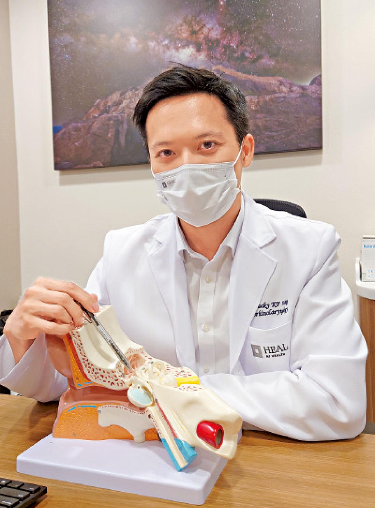 耳鼻喉科專科醫生黃嘉輝表示,中耳的範圍是耳膜到耳窩之間的位置,正常來說這空間充滿空氣,而耳膜後有3塊耳聽骨,由外到內分別是錘骨、耳砧骨和耳鐙骨,組成一條傳導鏈,將聲音由耳膜的震盪傳去內耳耳蝸,而耳蝸的神經便可以感覺到,變為聲音訊號。