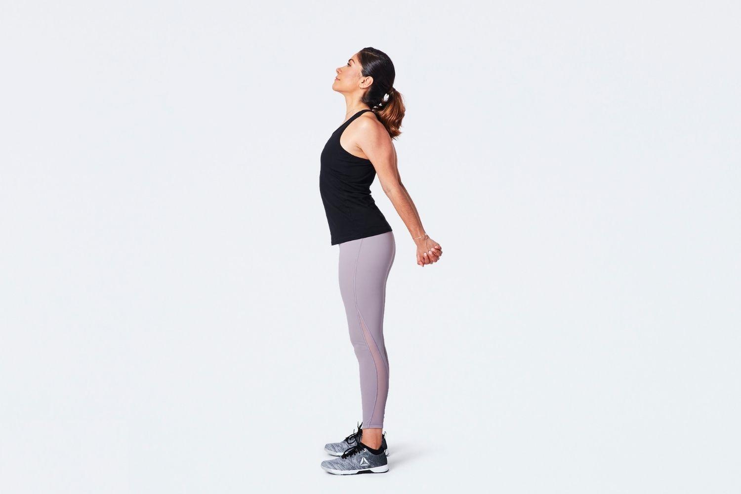 - 肩胛骨向背後擠壓,像要夾住脊椎,然後將胸部推出。