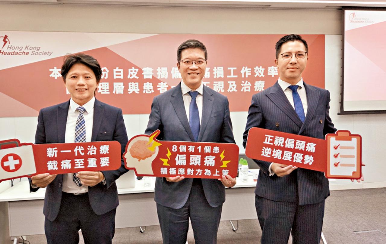 每8人就有一人患上偏頭痛,可是大部分人認知不足,以為只是普通頭痛;職場上患者工作表現受影響,生產力大跌一半。香港頭痛學會與醫護、科研、人力資源、保險界別代表合作撰寫了偏頭痛治療白皮書,望提升大眾認知、患者得到適切治療,並減少對經濟的影響。