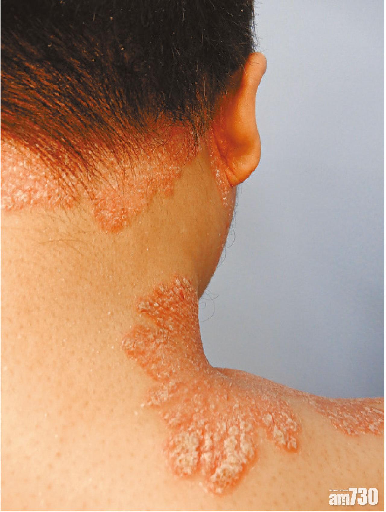 銀屑病常出現於頭皮位置。