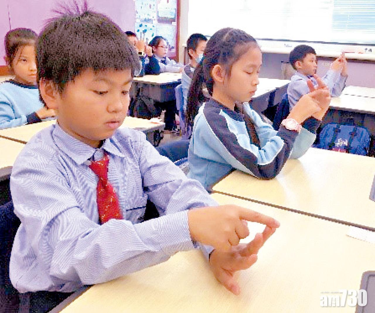 香港道教聯合會純陽小學學生在轉堂時做手指呼吸練習,以靜觀呼吸來平靜自己的情緒和提升專注力。