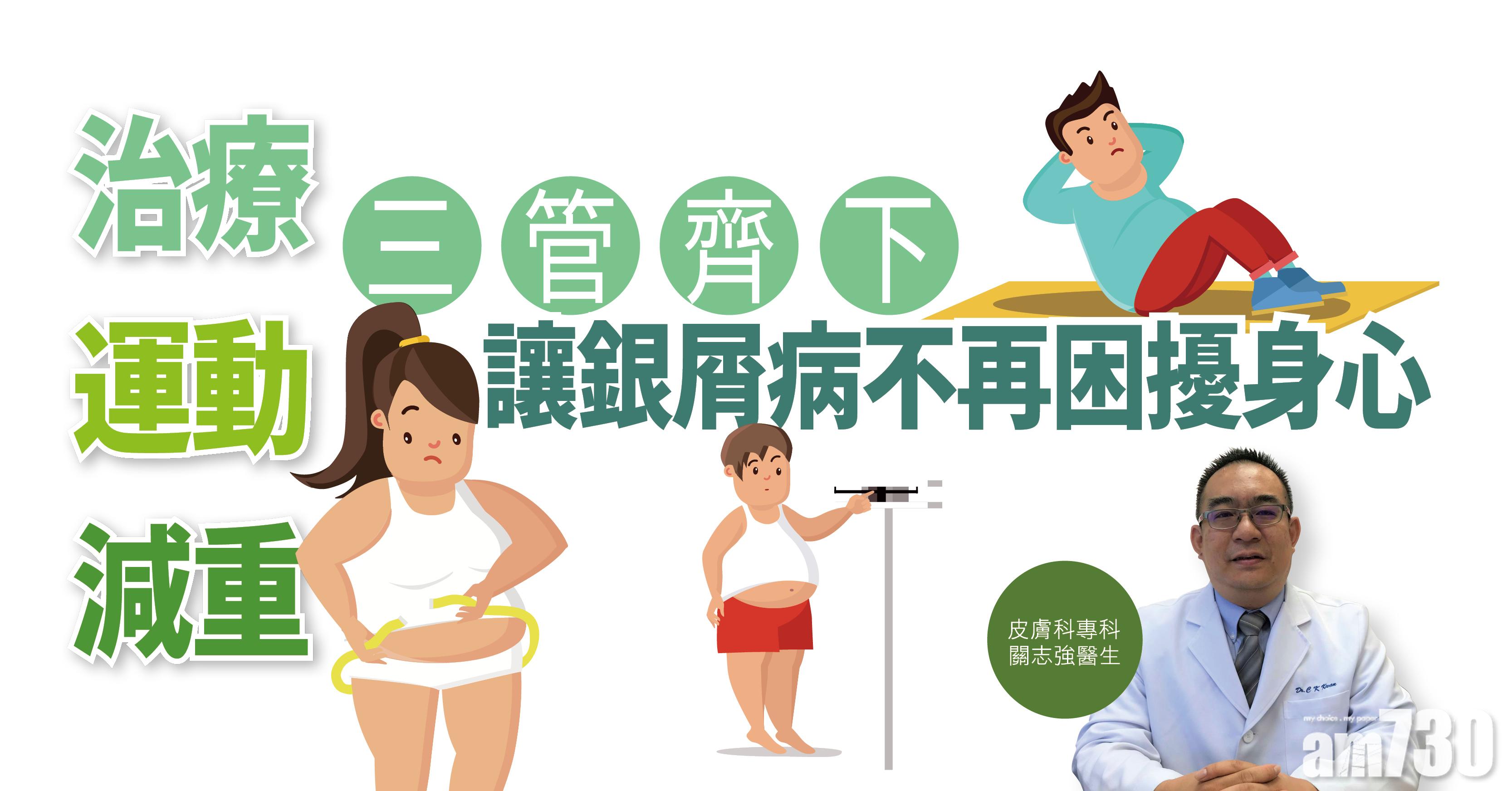 不過,生物製劑的治療成效需要取決患者的身體質素,肥胖就起著關鍵性影響。關醫生解釋,不少研究指患者的體重愈高,生物製劑的療效相對較低,換言之,愈是肥胖,病情就愈難受控:「銀屑病會有很多共病,例如高血壓、膽固醇過高及糖尿病,若然患者本身肥胖,同時出現代謝綜合症的風險就更高,這就變成雙重夾擊,要改善病情就更難。」