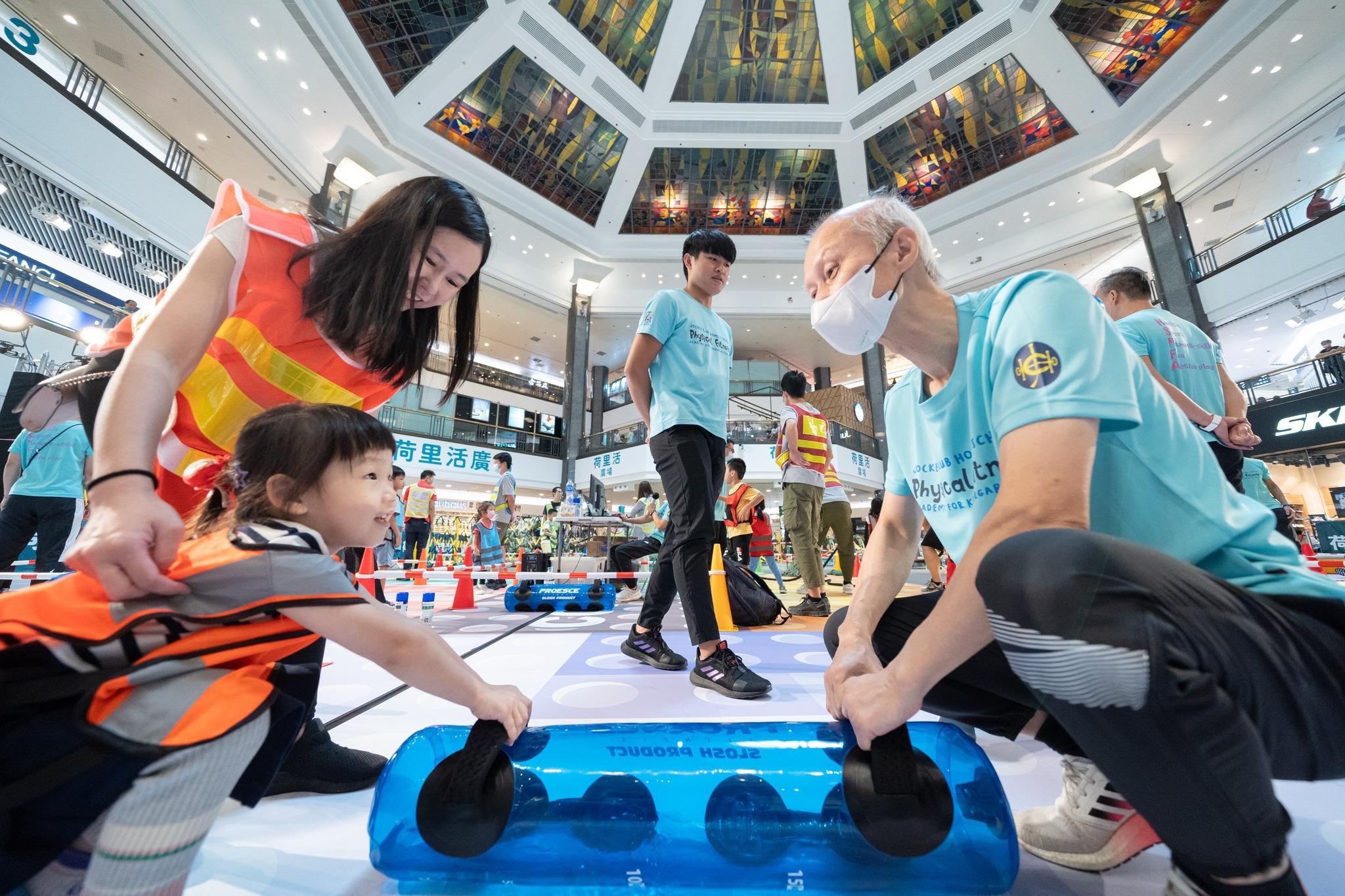 參加者須組隊合力闖關,合力完成任務並衝線過終點。遊戲側重團隊協作與親子互動,適合不同年齡層家庭深入交流。B區內亦設A.I.智能防跌測試體驗,現場有專業教練駐守,能即時為參加者分析測試結果,並根據需要提供運動或健康建議。